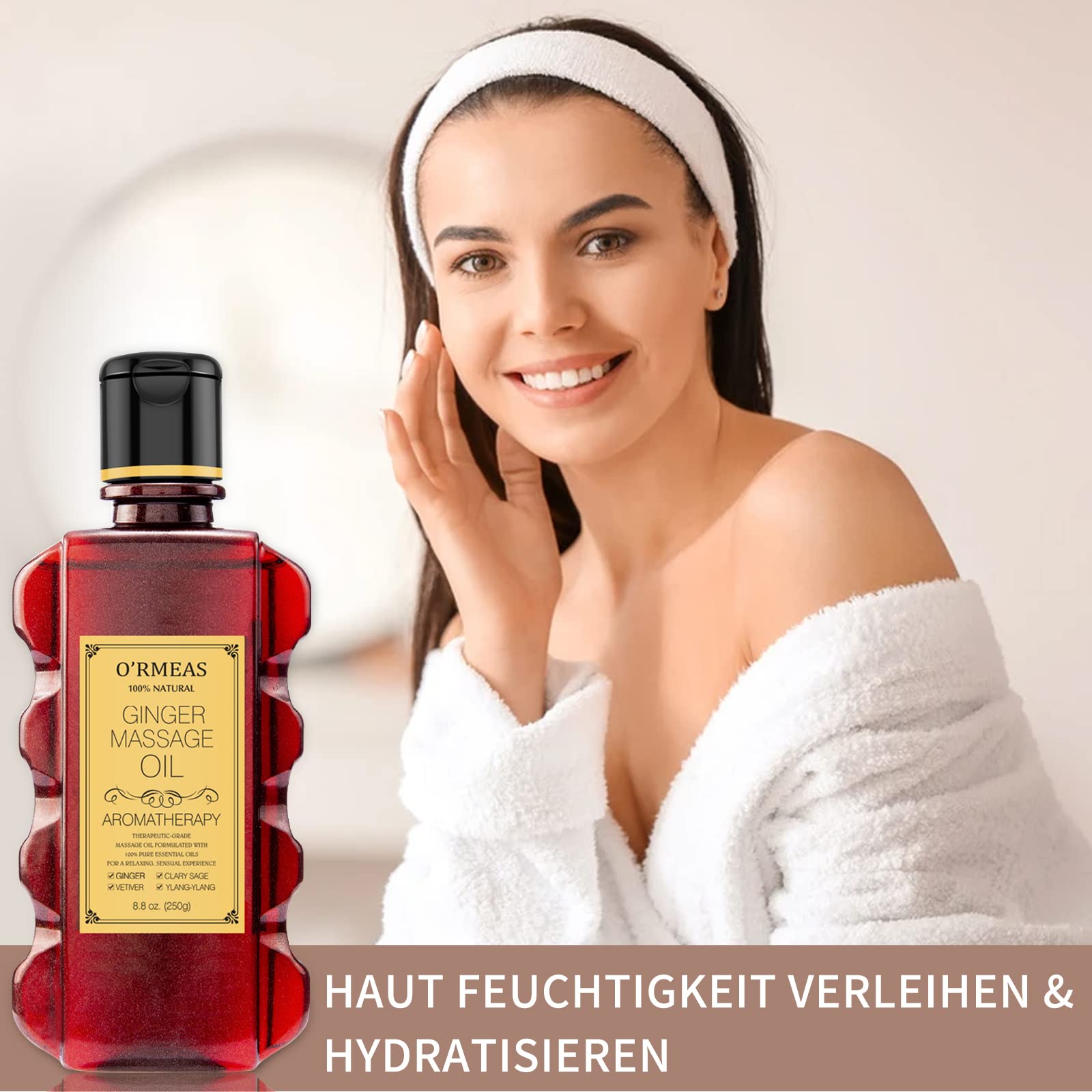 Ingwer Massageöl für Entspannen, Massieren Gelenkschmerzen Linderung massage öl Ginger Massage Oil Feuchtigkeitsspendendes Körperöl für Männer und Frauen 8,8 Unzen