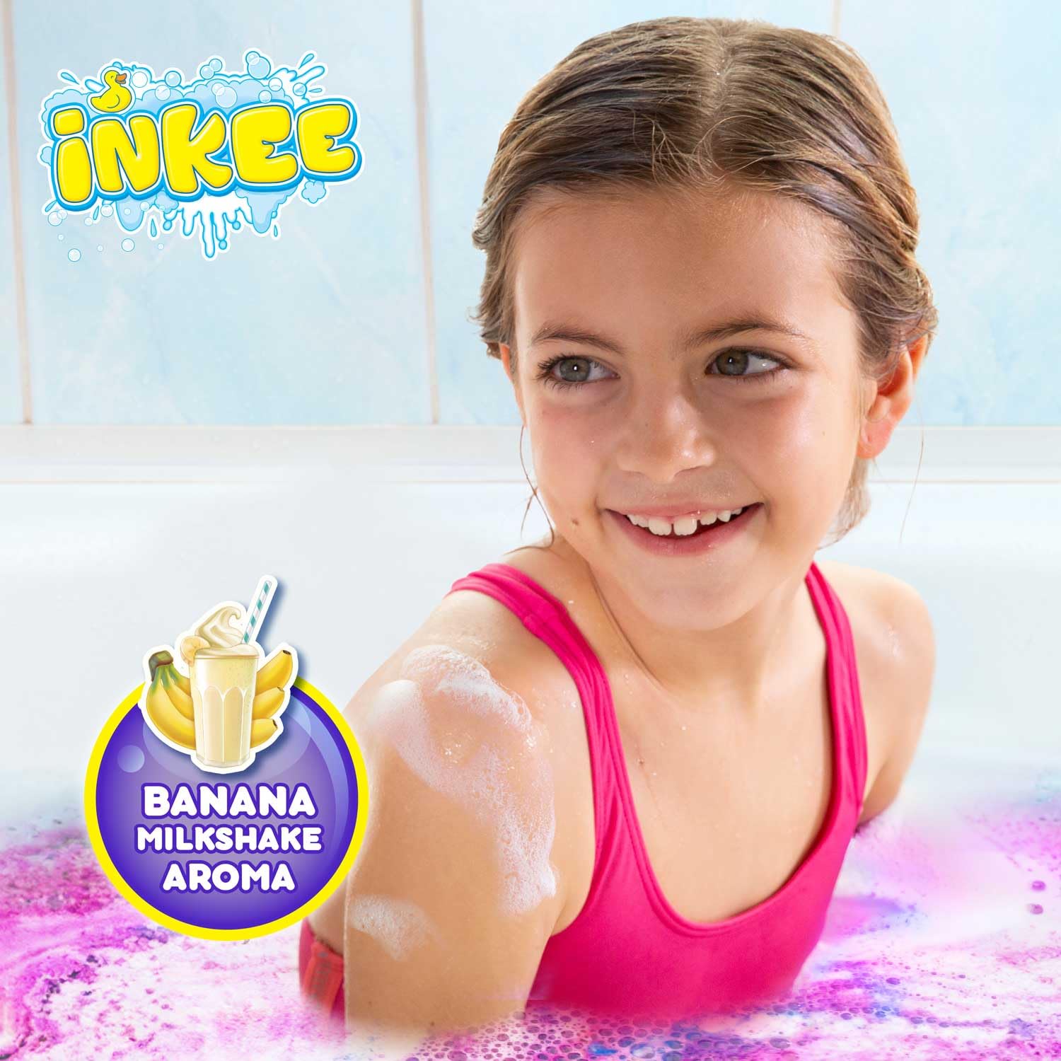 INKEE Galupy Mermaid Badestaub 16er Pack | Knisterndes Badesalz Kinder in pink, blau und lila mit Jojobaöl & Bananenmilch-Shake-Aroma, 16x 60g Beuteln – Badespass für Kinder