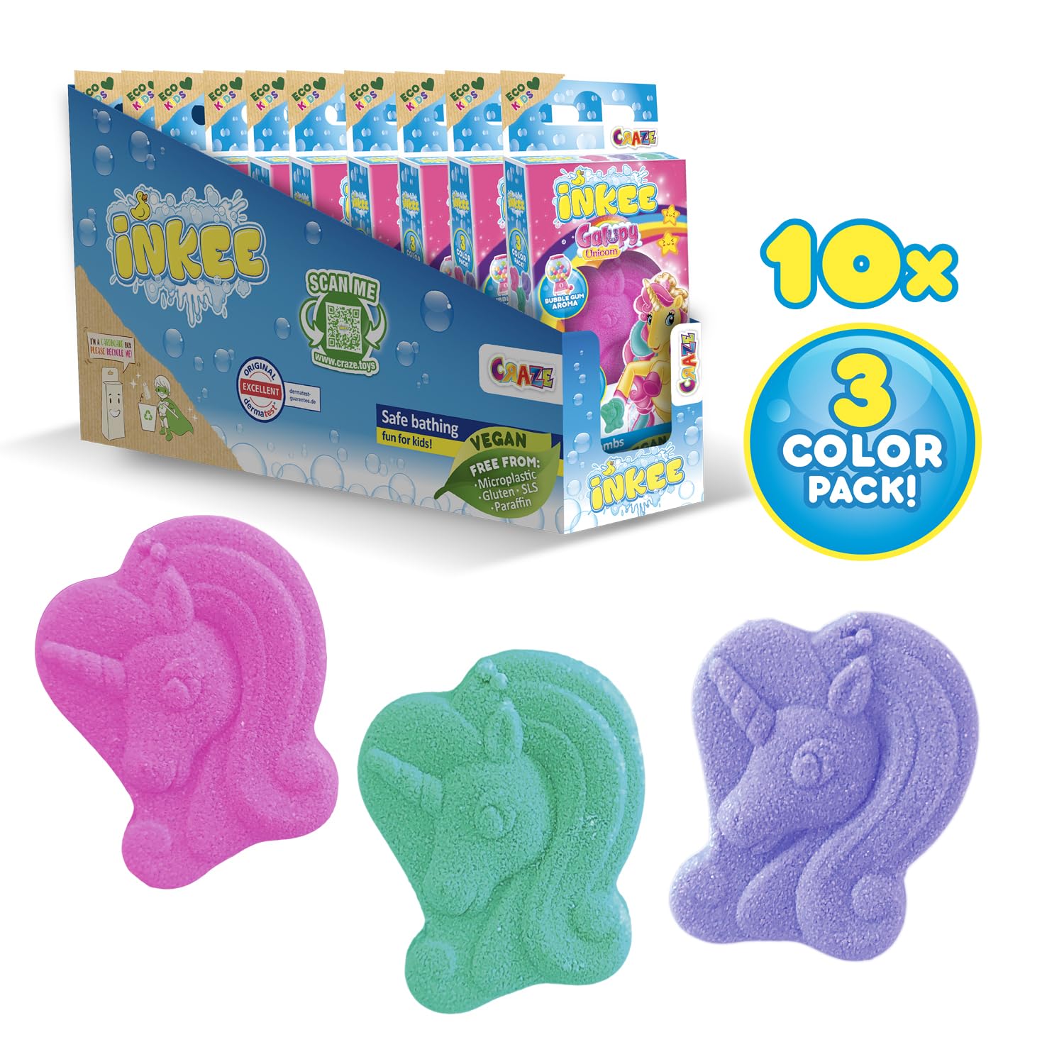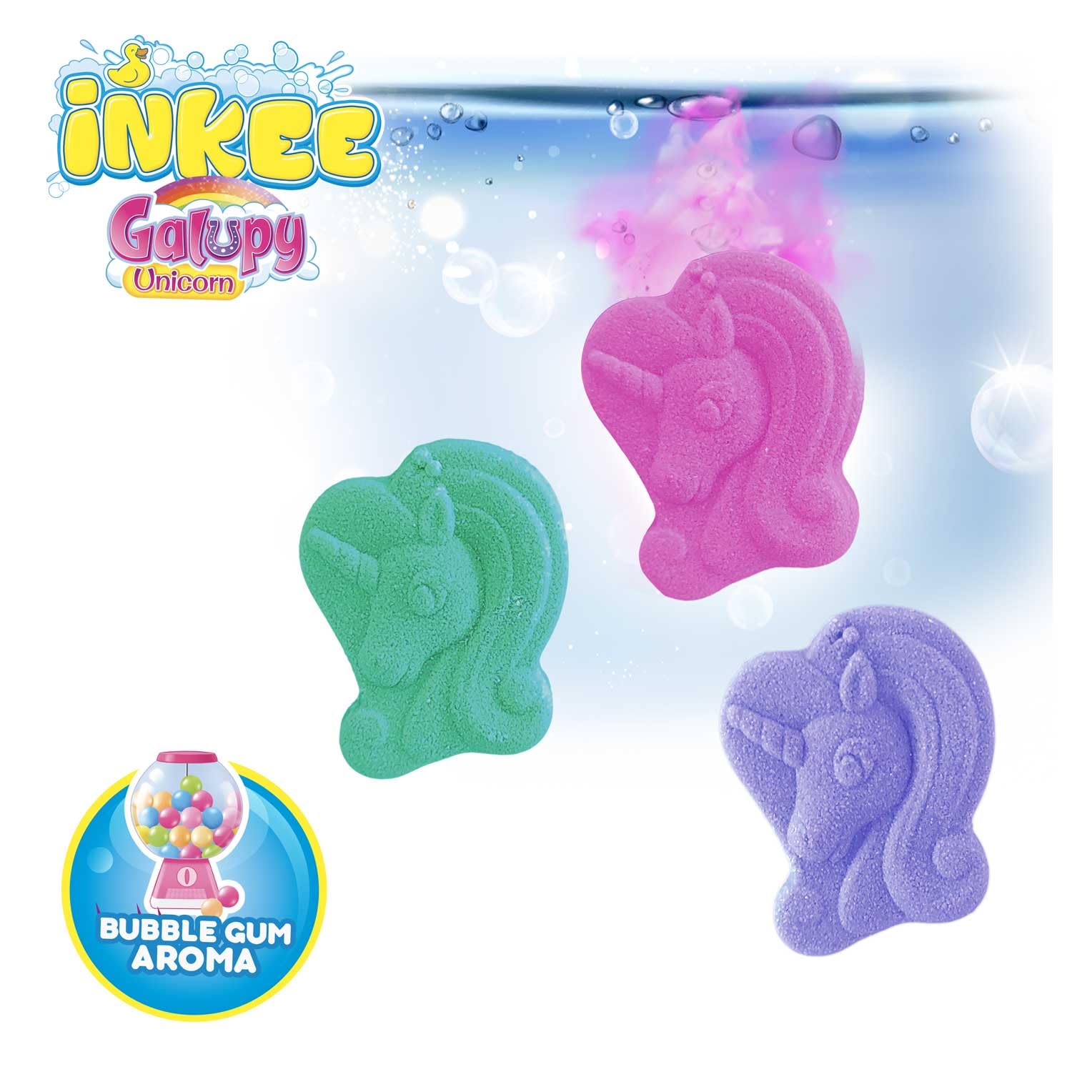 INKEE Badebomben Kinder GALUPY Mini Pack XXL - 30er Pack Badekugeln mit spassigen Farben, Einhorn Badebombe mit Kaugummi Aroma & Jojobaöl - 30x 15g