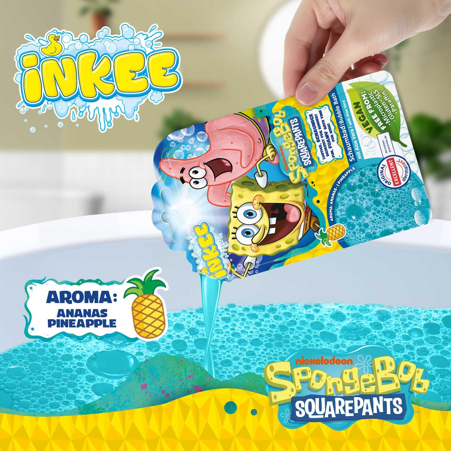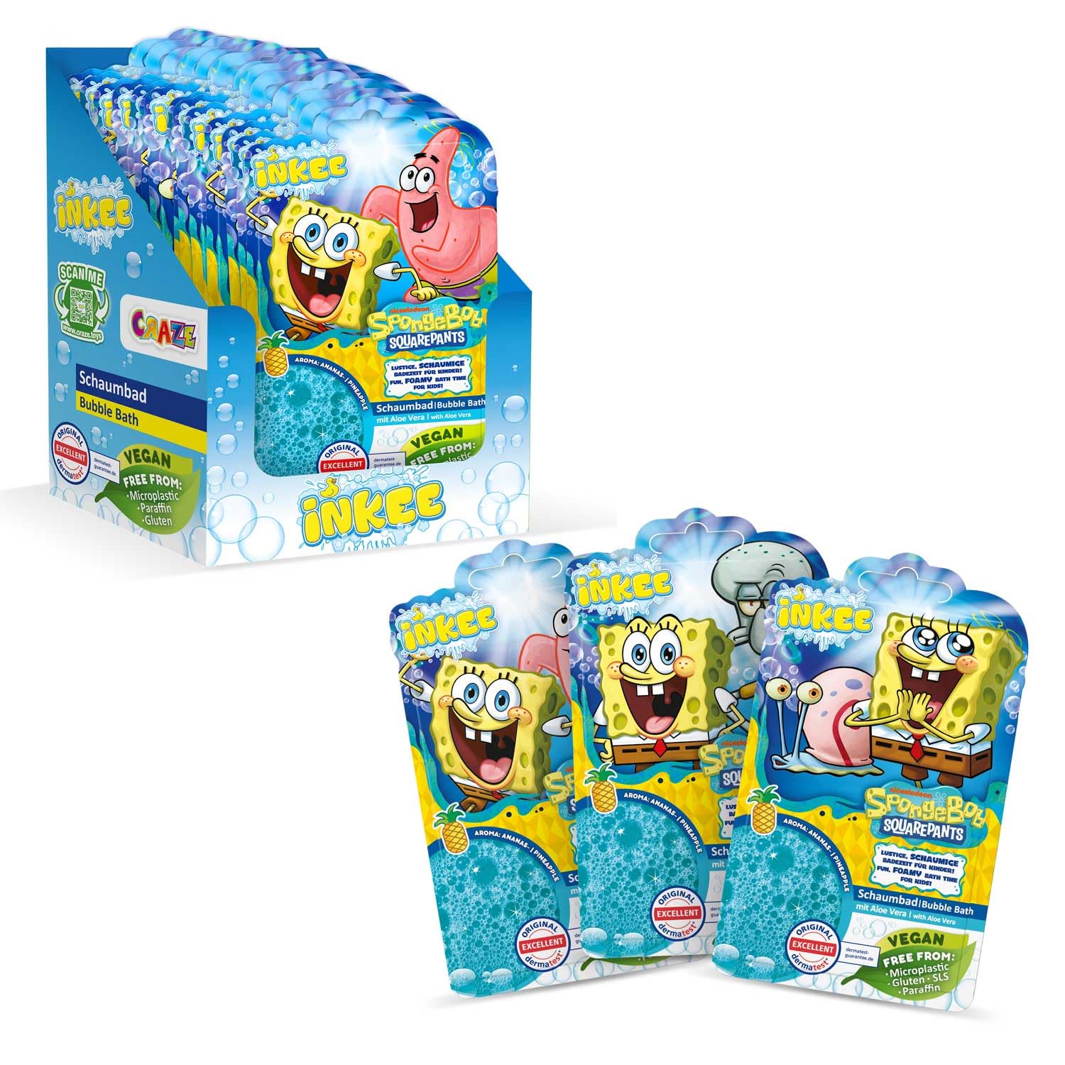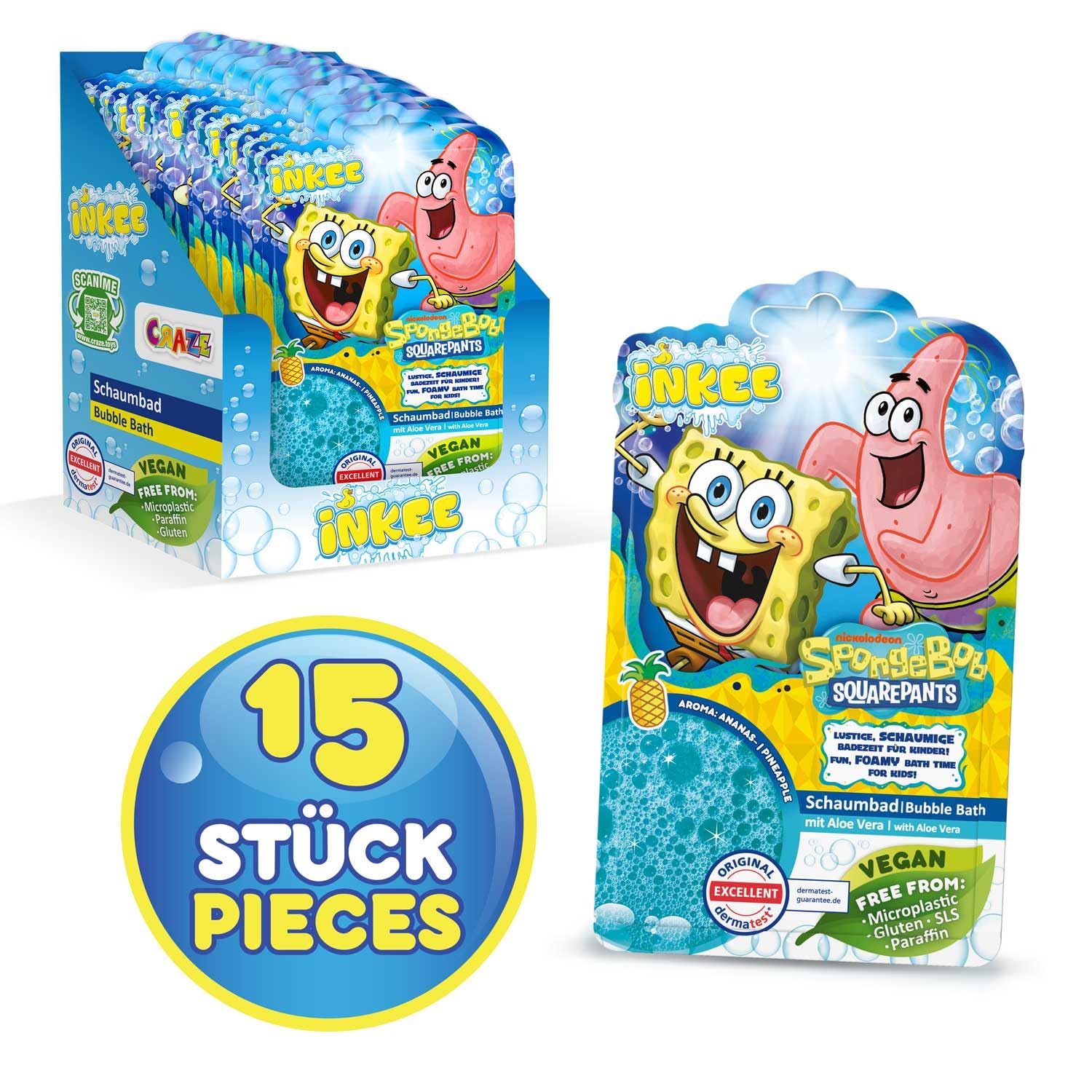 INKEE - Bubble Bath Liquid Sponge Bob 15er Set | Badezusatz Kinder, blaues Schwammkopf Schaumbad kinder Mit Mandelöl & Ananas Duft, 15x 40g