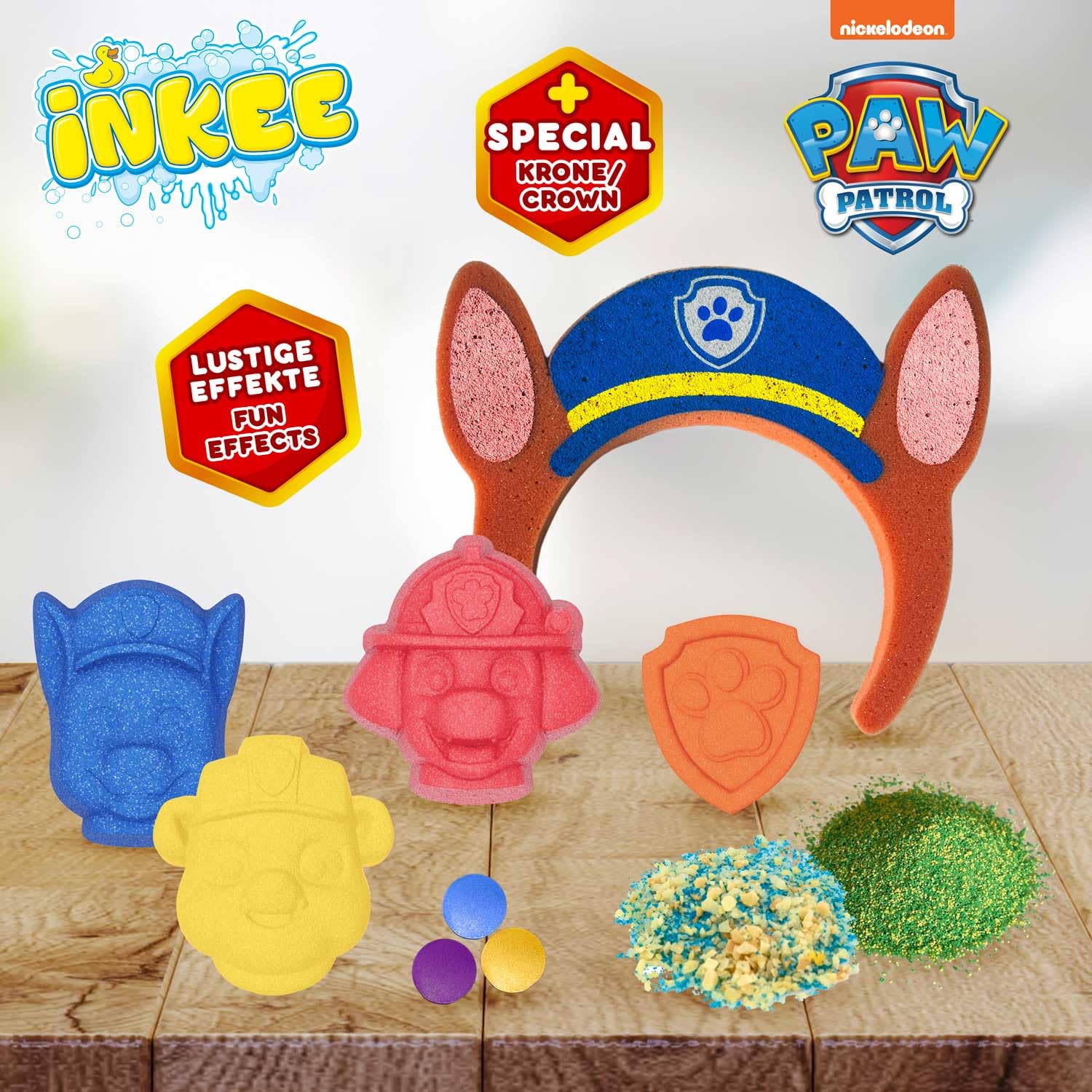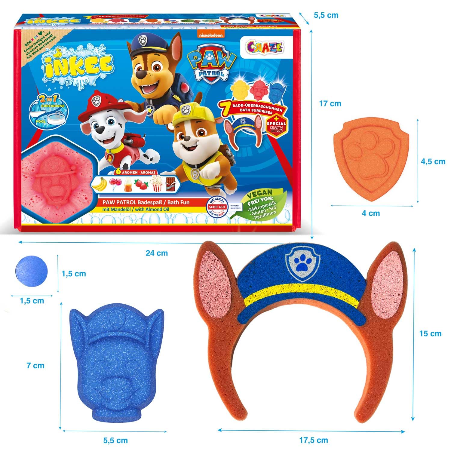INKEE - Bade-Set Paw Patrol – Geschenkset mit 7 Badezusätzen, parfümiertem Kinderbadesalz & Zubehör, Jojobaöl