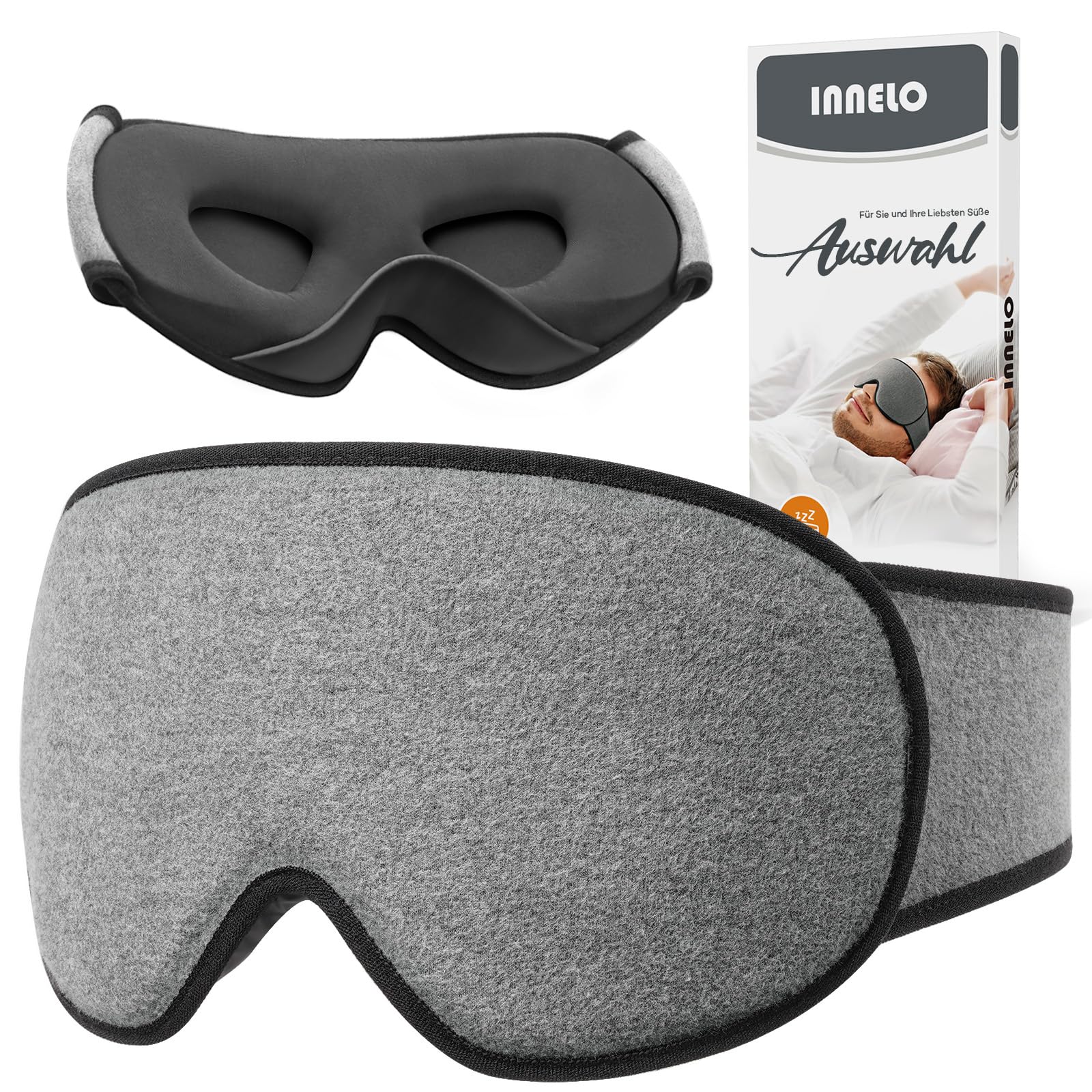INNELO Schlafmaske für Seitenschläfer, Verbesserte 3D Lichtblockierende, mit Gehörschutz, Ultraweiche und Bequem Augenmaske, Schlafbrille mit klettverschluss für Frauen,Herren, Grau