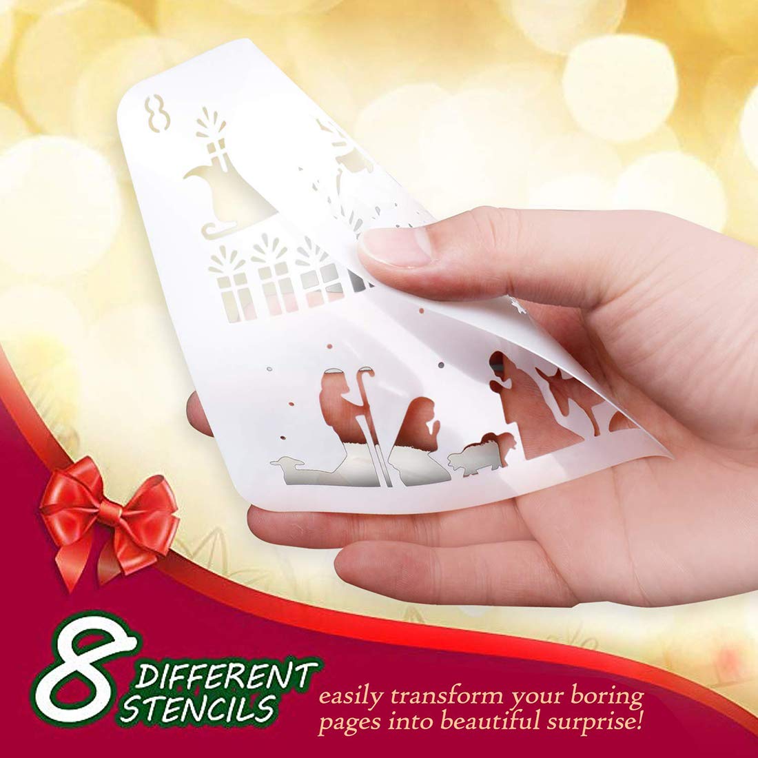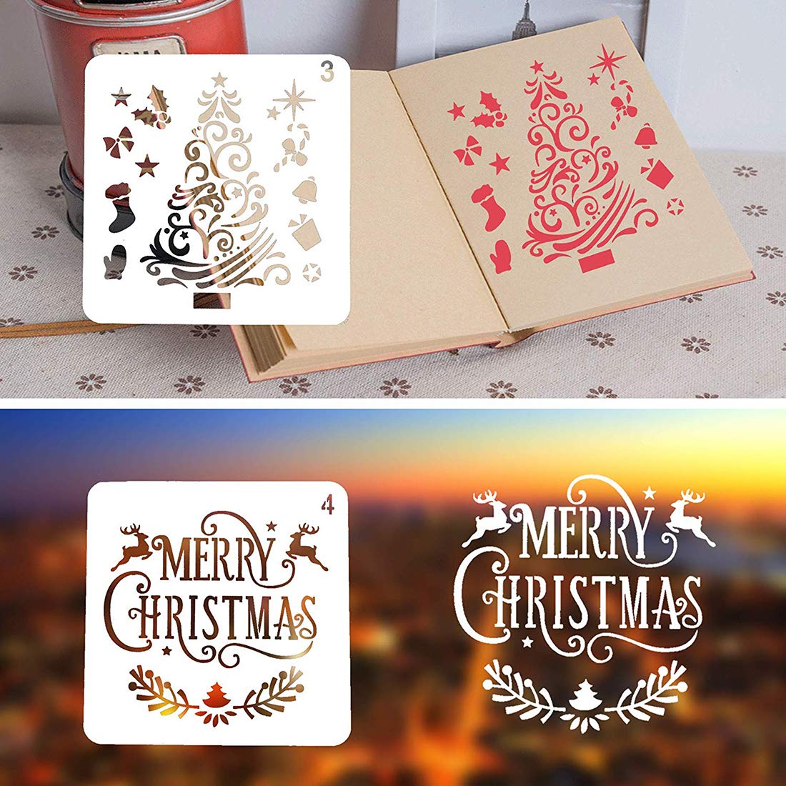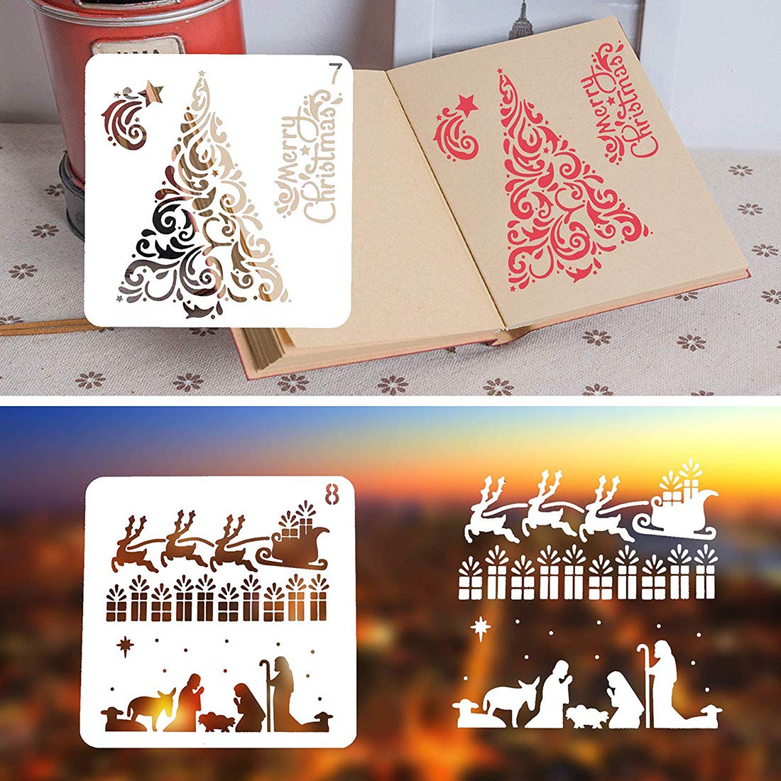 - ???? 8 Stück Schablonen weihnachten aus sicheren und umweltfreundlichen PET-Materialien, langlebig, wiederverwendbar, waschbar. Kann für nächstes Jahr wieder verwendet werden.