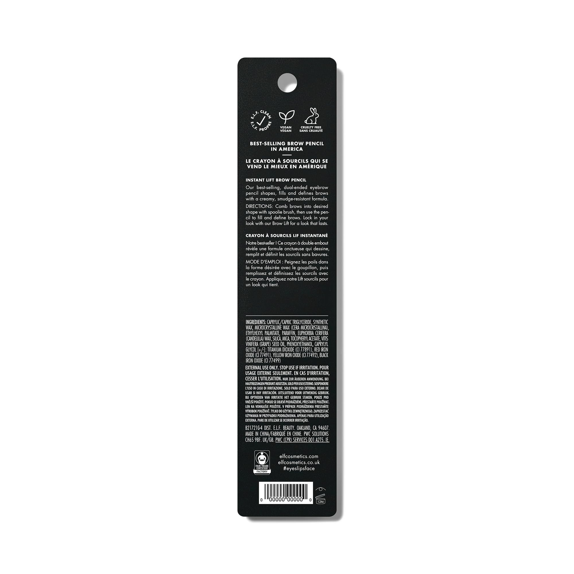 e.l.f. Instant Lift Brow Pencil, Doppelendiger Präzisions-Augenbrauenstift Zum Definieren Und Formen Der Augenbrauen, Vegan & Tierversuchsfrei, Taupe, 0,18 g (Packung mit 3)