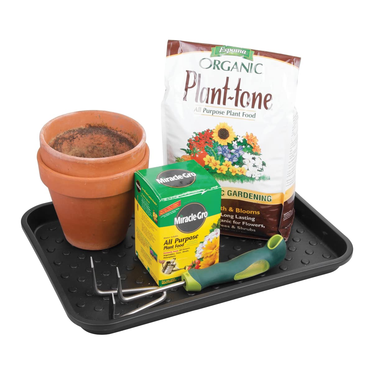 Schützen Sie Schränke, Böden oder andere Bereiche, die Wasser abtropfen oder verschütten können, mit diesem Set von zwei iDesign Kunststoffschalen. Die Spülbeckenmatten fangen Verschüttungen und Tropfen auf und haben erhöhte Kanten, um Wasser aufzufangen. Nicht nur unter den Bodenmatten der Küchenspüle, die Kunststofftabletts können als Stiefel- oder Schuhmatte verwendet werden, um Schlammräume oder Eingänge sauber und sauber zu halten. Der Untertischbezug kann auch zur Aufbewahrung von Reinigungsmitteln und vielem mehr verwendet werden. Küchenspüle-Matten und -schützer sind aus robustem Polypropylen-Kunststoff für jahrelangen täglichen Gebrauch und die gepunktete Textur verhindert, dass Ihre Gegenstände auf dem schwarzen Tablett rutschen. Misst 43,2 x 33 x 5,1 cm für eine ideale Organisation von Haus und Küche, ohne zu viel Platz einzunehmen. 2er Set Mit iDesign können Sie jeden Tag einfach und nachhaltig leben.