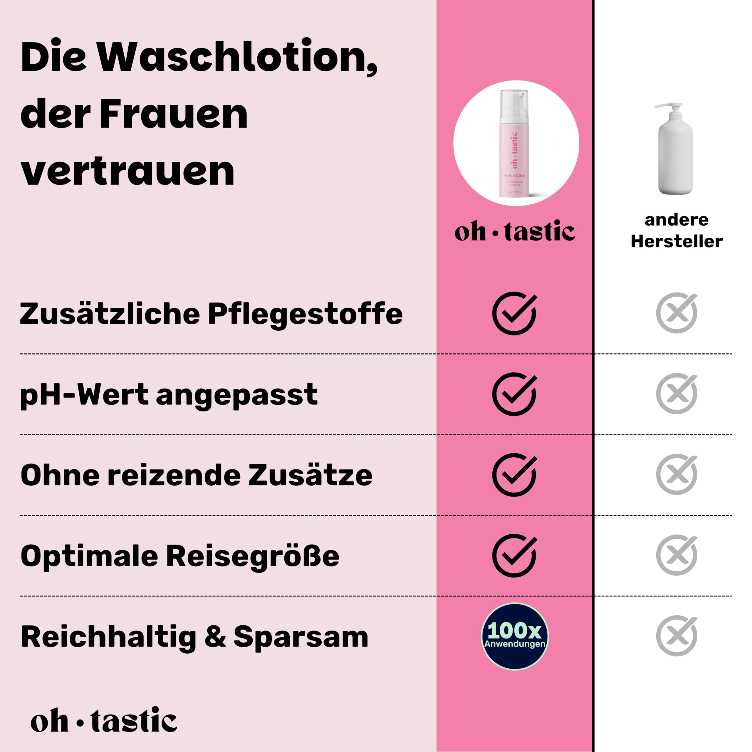 ohtastic Intim Waschlotion Damen 50 ml, seifenfreie Intimpflege mit Milchsaeurebakterien
