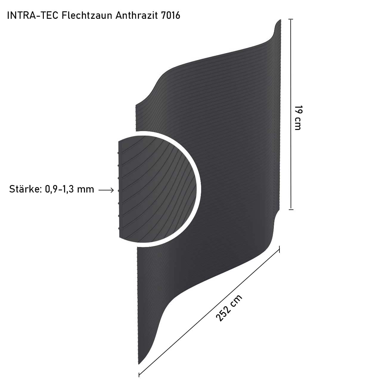 INTRA-TEC Zaun-Sichtschutzstreifen Anthrazitgrau - 9 Stück aus Hart-PVC 252x19 cm, RAL 7016 für Doppelstabmattenzäune, Windschutz
