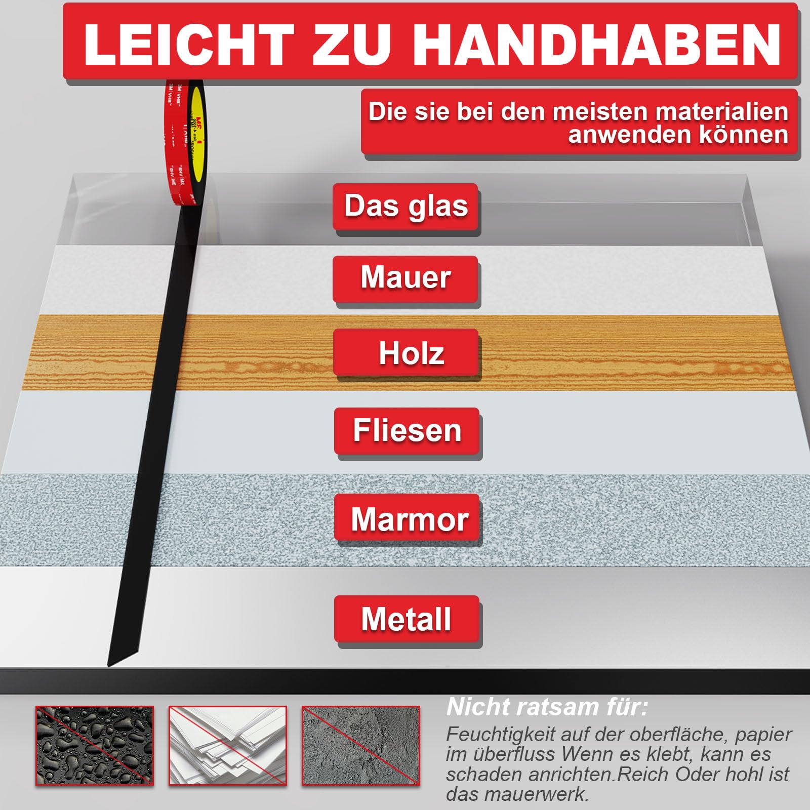 Das extra starke doppelseitige Klebeband von InTrans ist die perfekte Lösung für Ihre Haftbedürfnisse. Mit einer fortschrittlichen Formel, die eine hervorragende Haftung gewährleistet, bleibt dieses Klebeband auf jeder glatten Oberfläche an Ort und Stelle, von Fotos und Plakaten bis hin zu Dekorationen und LED-Lichtern. Darüber hinaus ermöglicht das rückstandsfreie Design ein sauberes und spurloses Abziehen und hält Ihre Oberflächen makellos. Es ist ideal für eine Vielzahl von Anwendungen, von zu Hause und im Büro bis hin zu Bastelprojekten und verfügt über eine Qualitätssicherung und einen hervorragenden Kundenservice. Mit den Massen 300 x 2 x 0,11 cm ist dieses doppelseitige Klebeband wasserfest und kompatibel mit einer Vielzahl von Materialien, einschliesslich Metall, Kunststoff, Glas, Holz, Stein und Vinyl.
