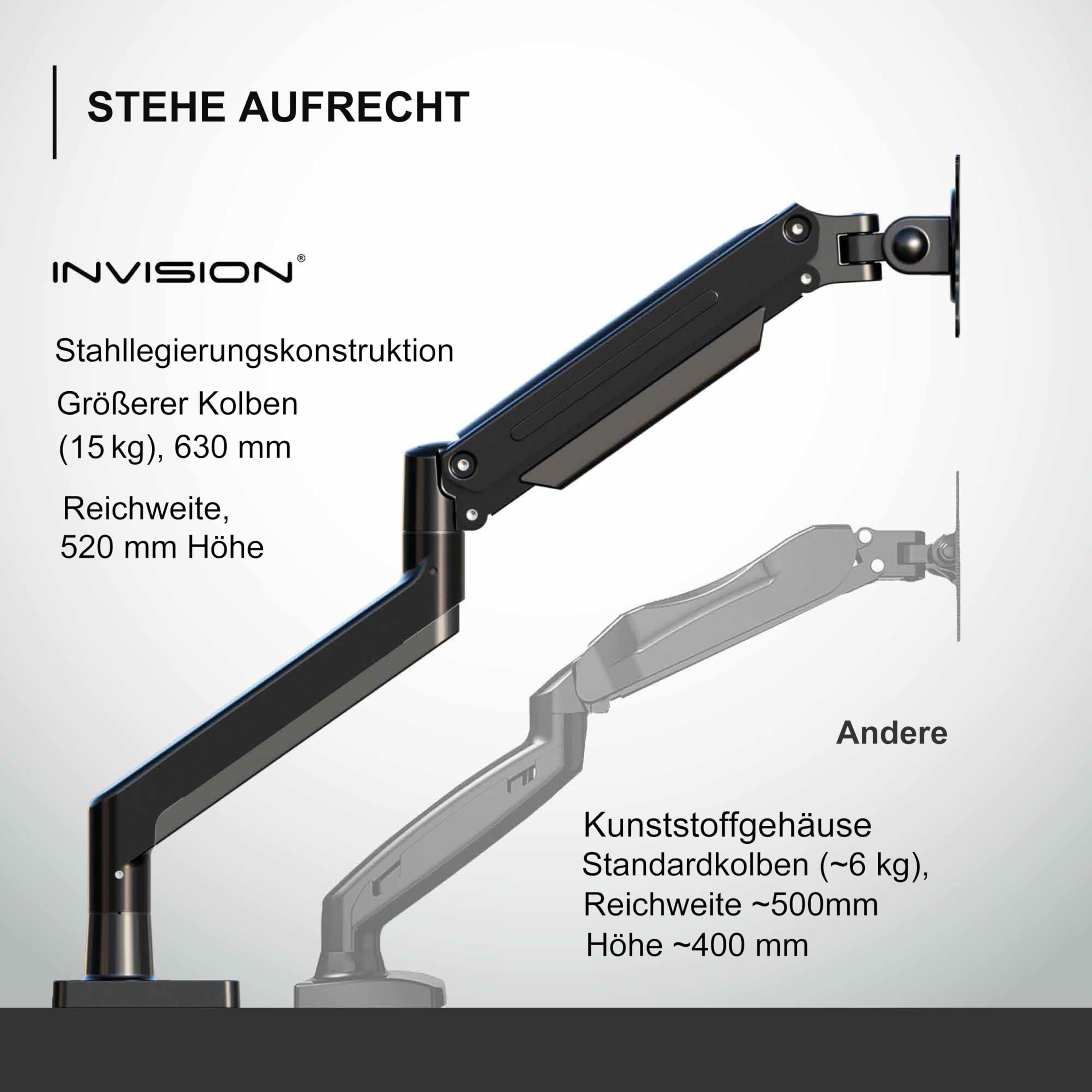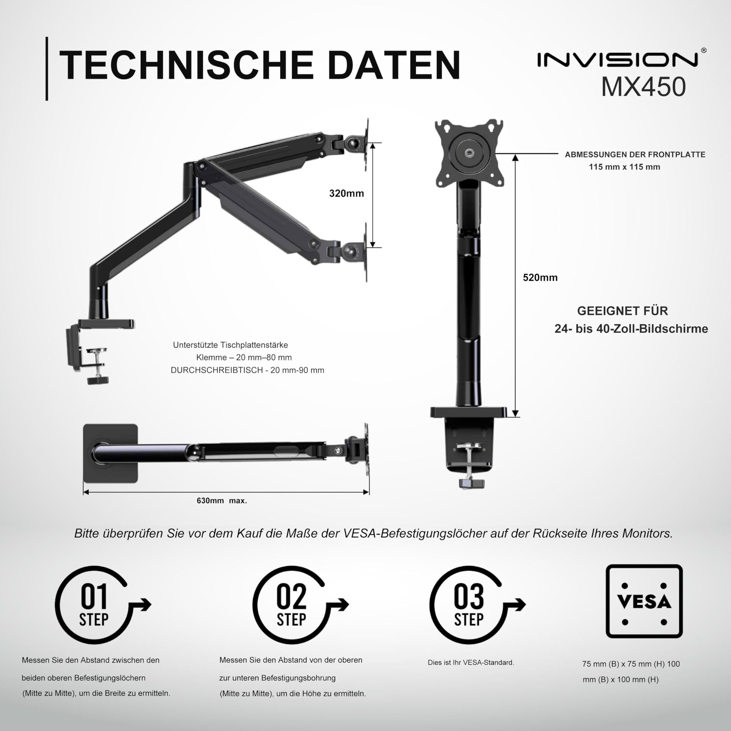 Invision Monitorarm Halterung fur Monitore von 24"-40" VESA 75/100mm ergonomisch höhenverstellbare Schreibtischklemme 2-15 kg (MX450)