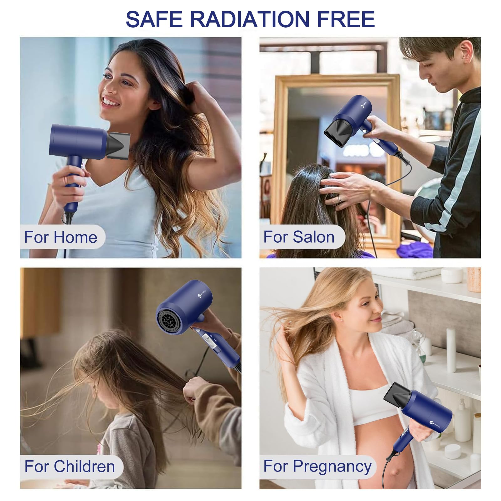 Ionen Föhn AC Motor 1800W Haartrockner, slopehill Schnelltrocknen Hair Dryer, Haarfön mit Heiss-/Kalttaste, 3 Fön Concentrators and Diffuser, 3 Temperatureinstellungen, 2-Gang (Dunkelblau)