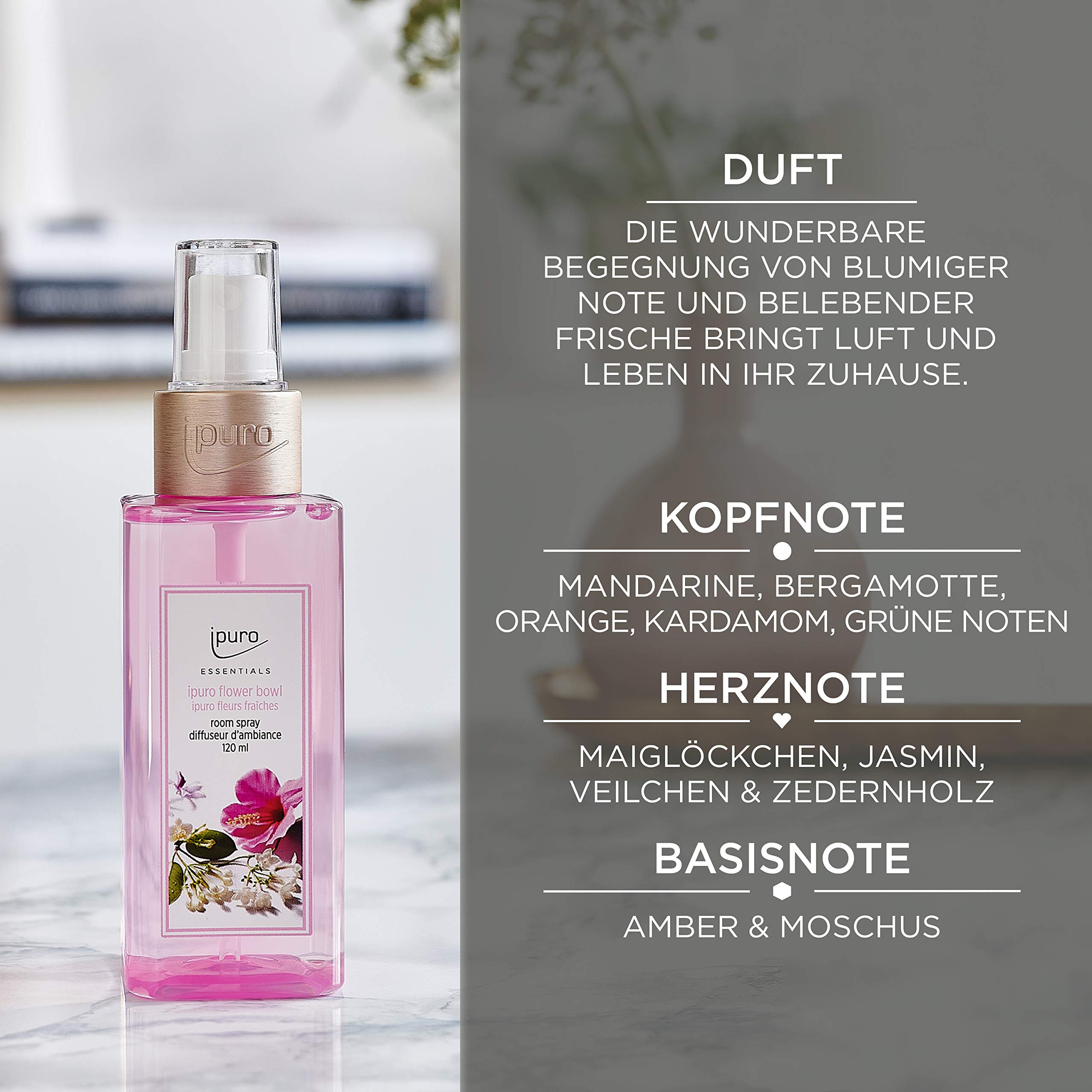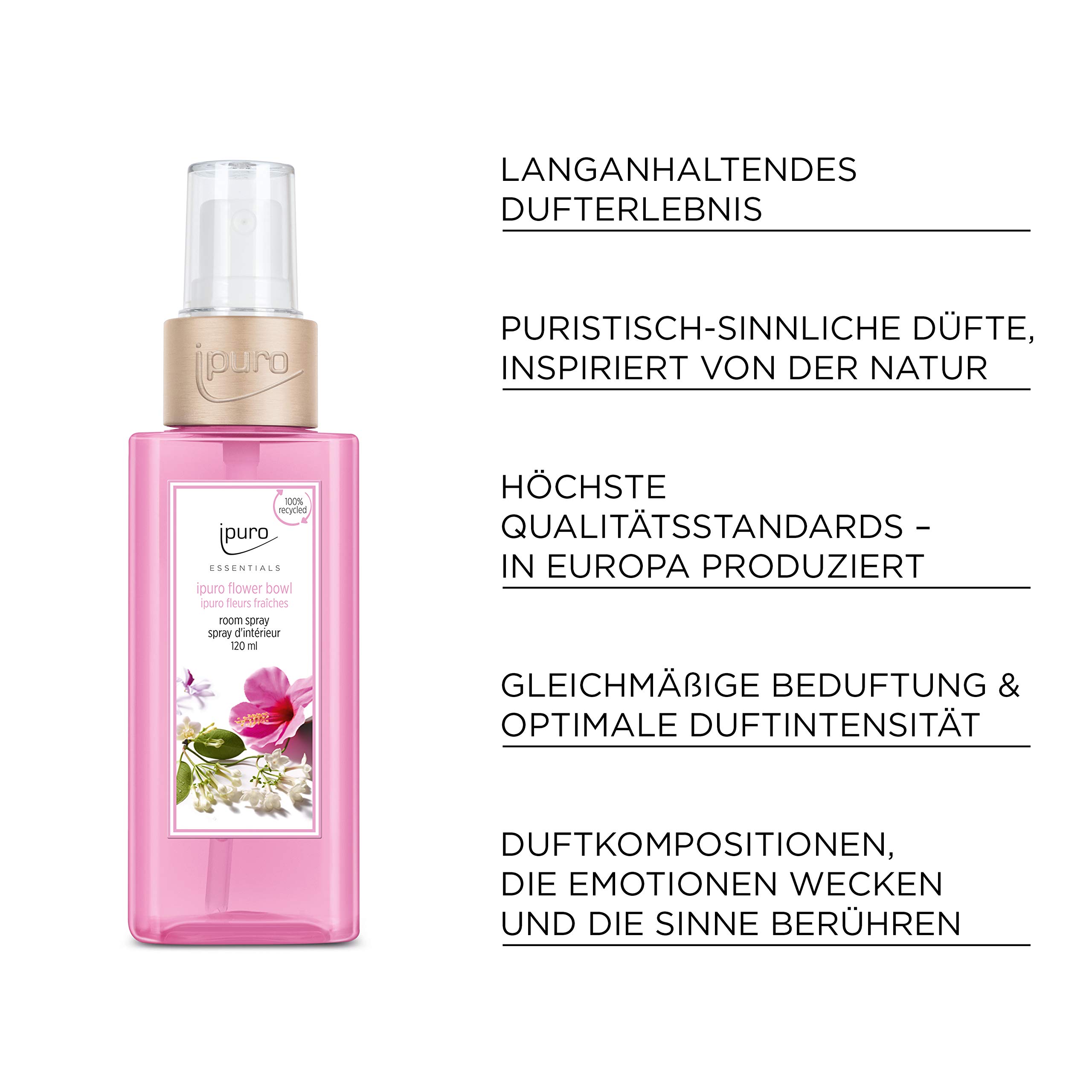 ipuro - erfrischendes ipuro flower bowl Raumspray - dezentes Duftspray mit blumigen & belebenden Noten - stilvolles Room Fragrance für ein puristisches Dufterlebnis in jedem Raum 120 ml