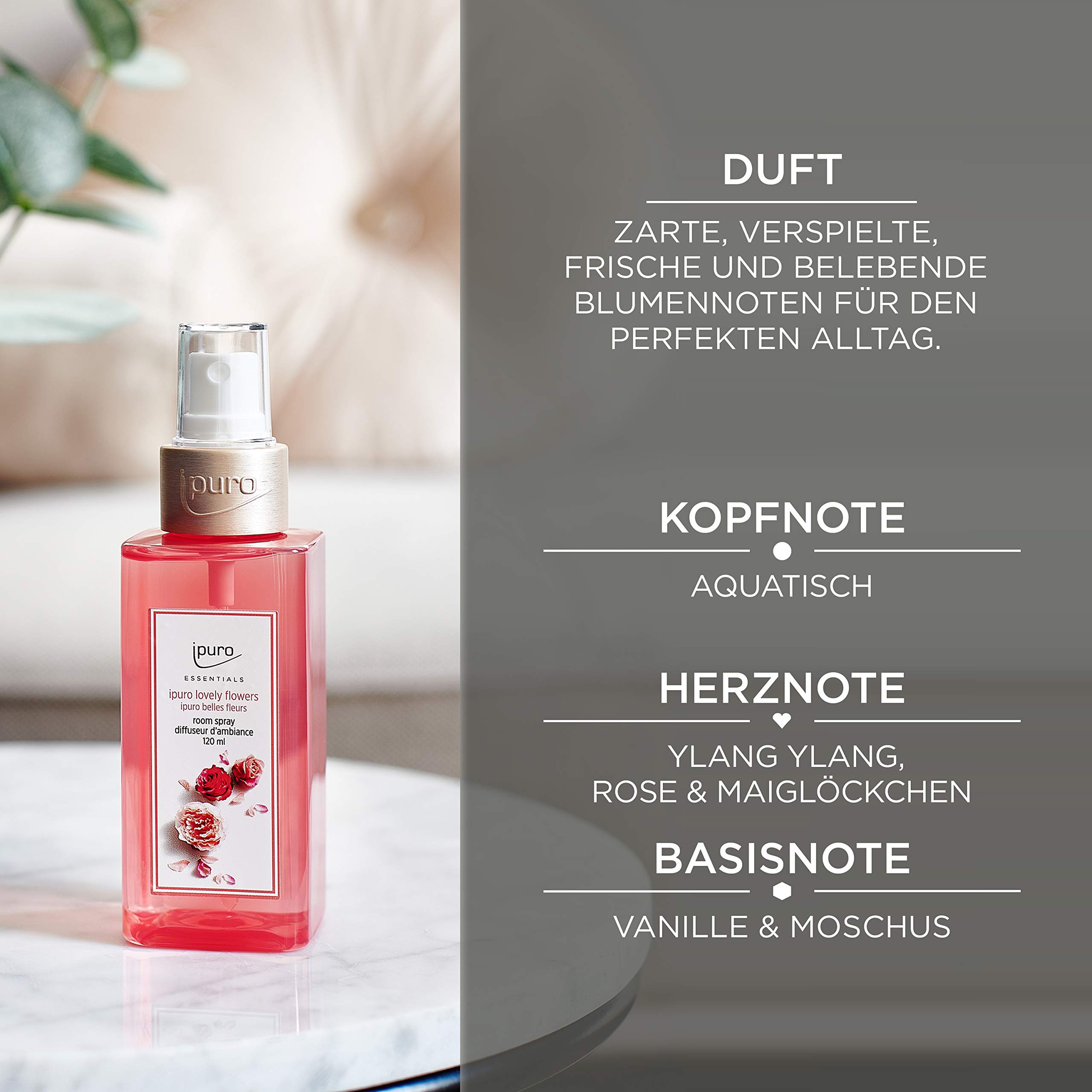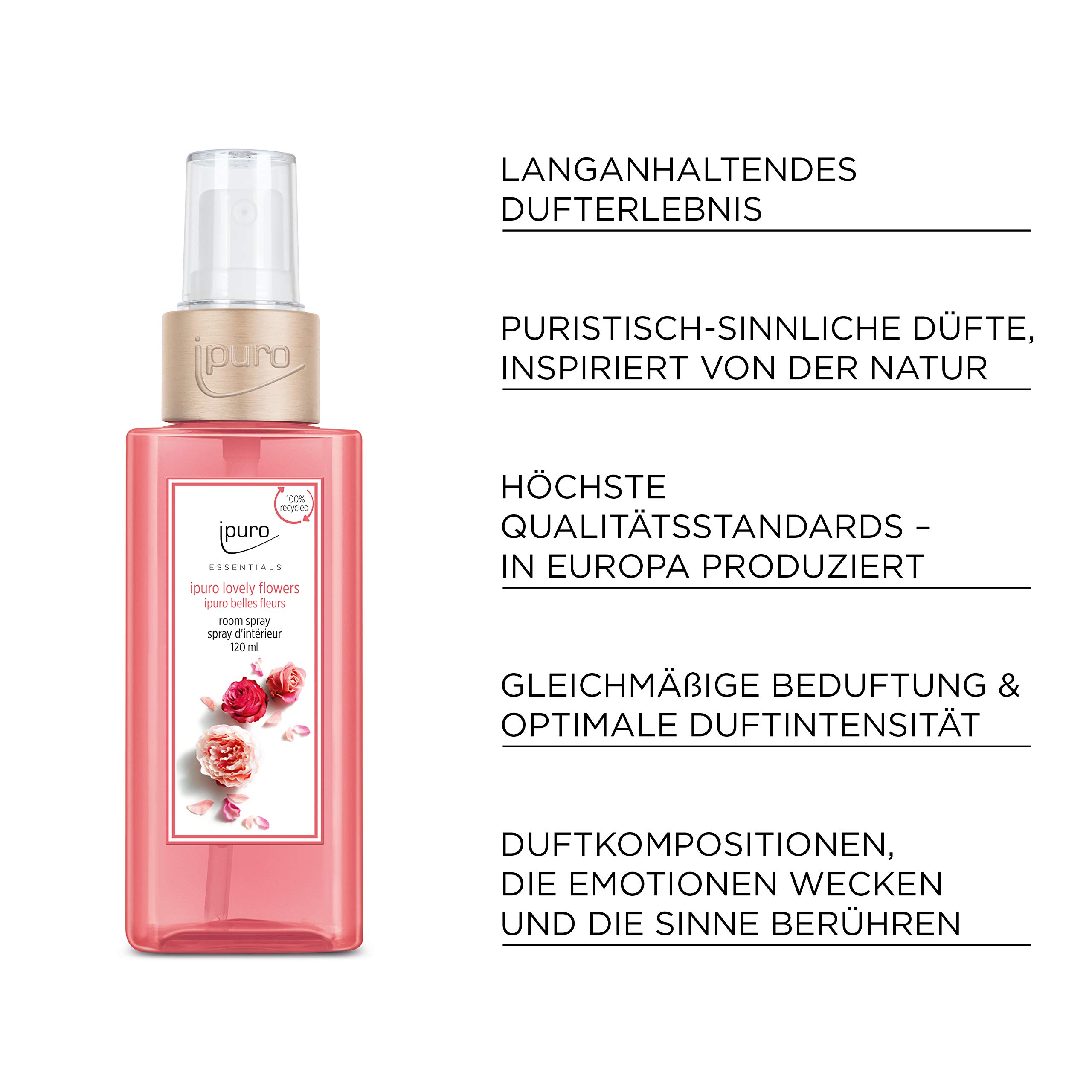 ipuro - erfrischendes ipuro lovely flowers Raumspray - dezentes Duftspray mit frischen & blumigen Noten - stilvolles Room Fragrance für ein puristisches Dufterlebnis in jedem Raum 120 ml