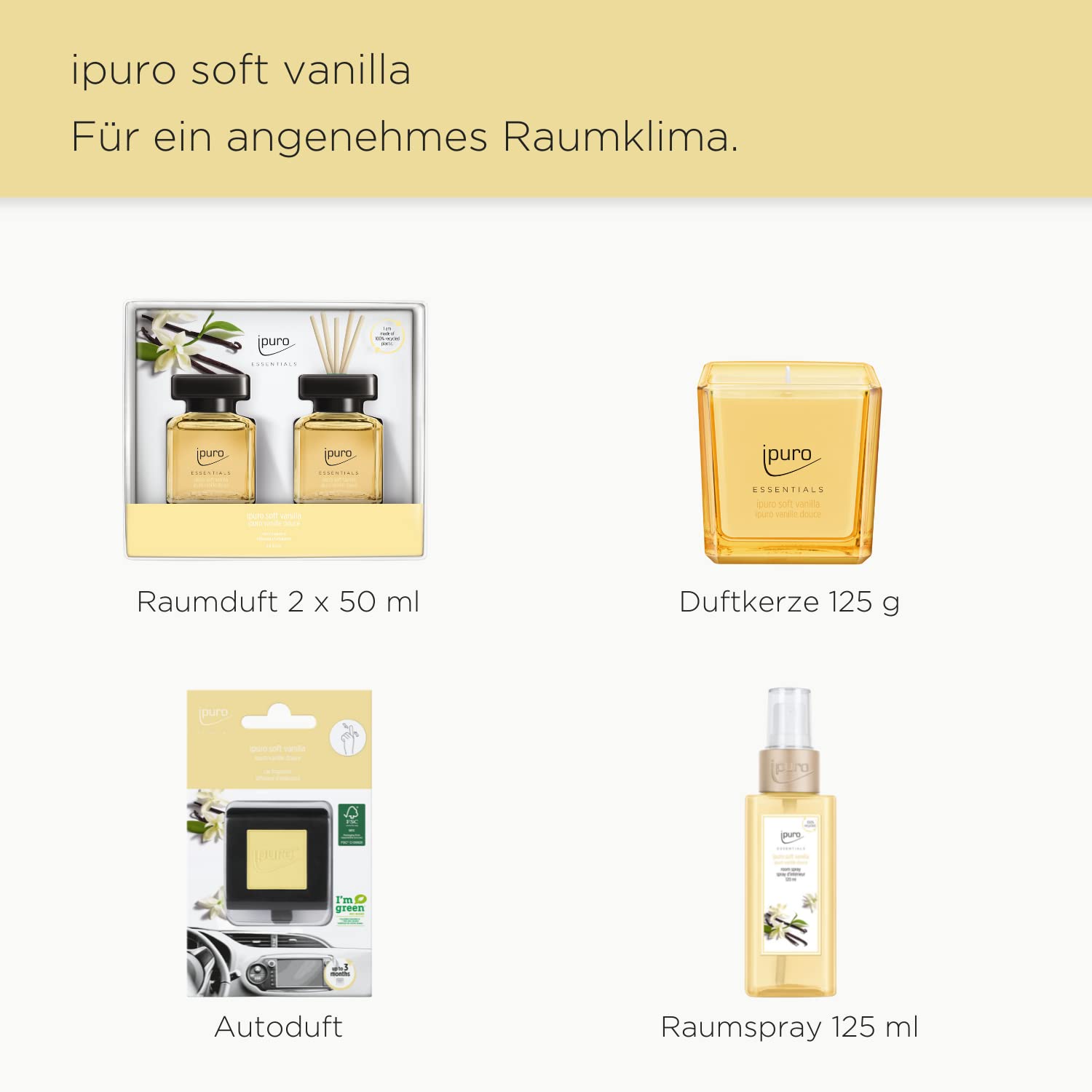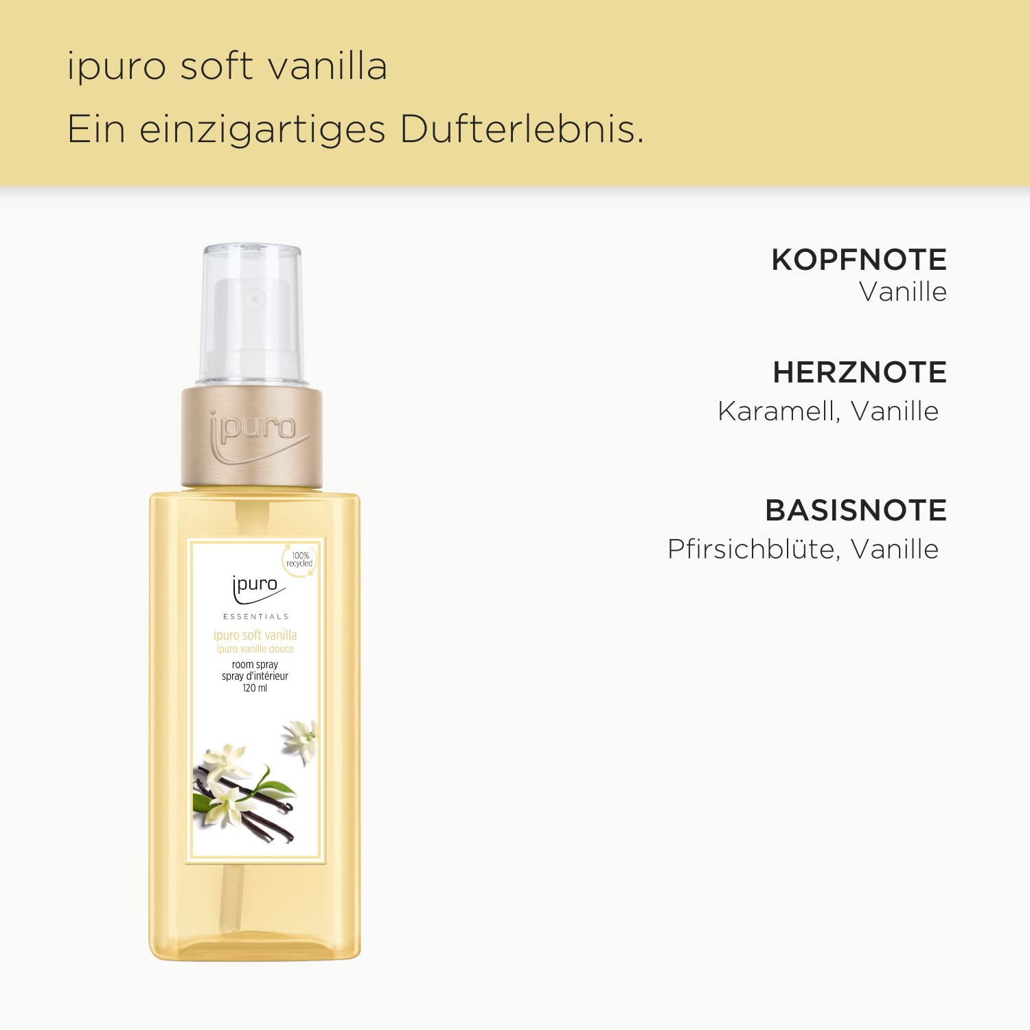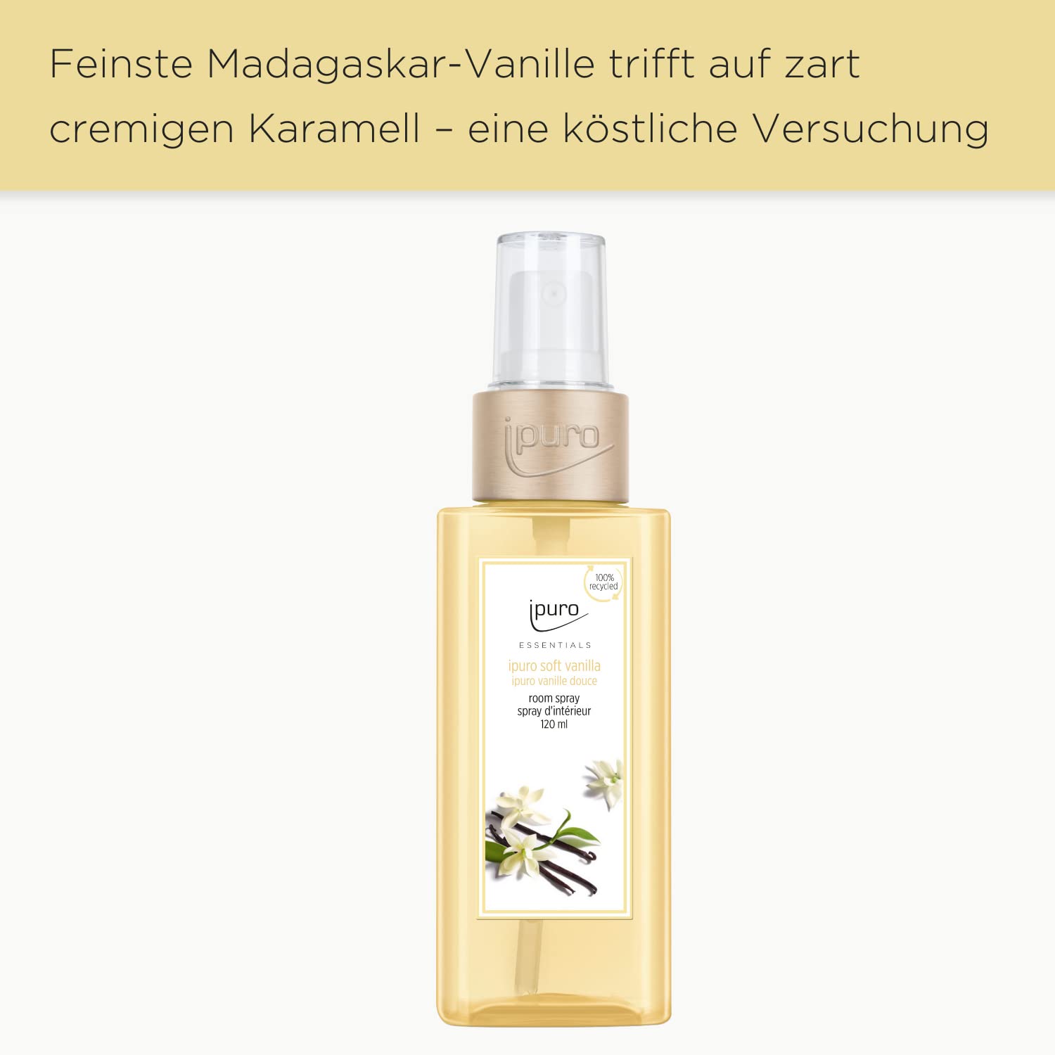 ipuro - erfrischendes ipuro soft vanilla Raumspray - dezentes Duftspray mit feiner Madagaskar Vanille - stilvolles Room Fragrance für ein puristisches Dufterlebnis in jedem Raum 120 ml