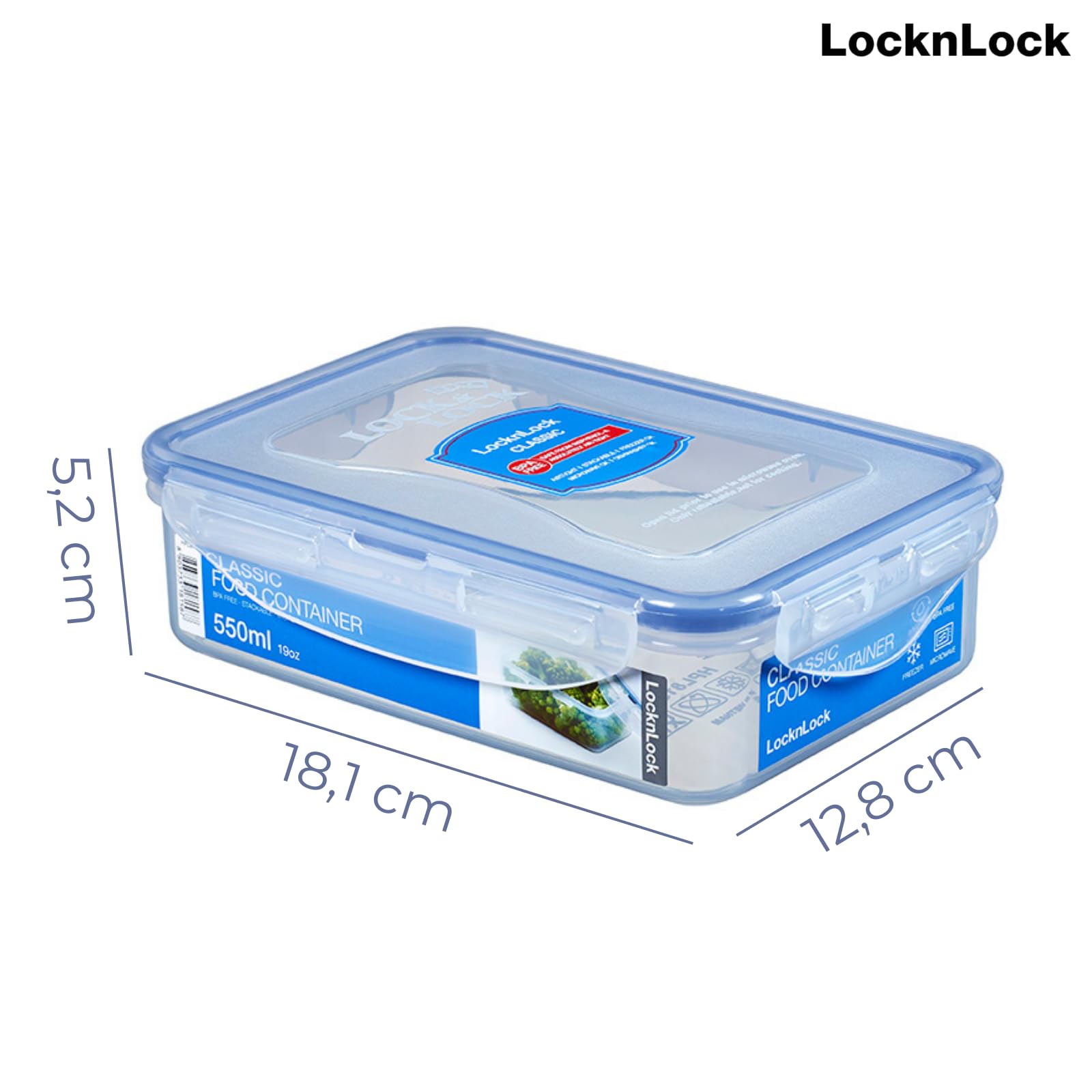 LocknLock CLASSIC Frischhaltedose | 550 ml | 18,1 x 12,8 x 5,2 cm | 100 % luft- und wasserdichte Vorratsdose | Spülmaschinen-, und Mikrowellengeeignet | BPA-Frei | 4-fach Sicherheits-Verschluss