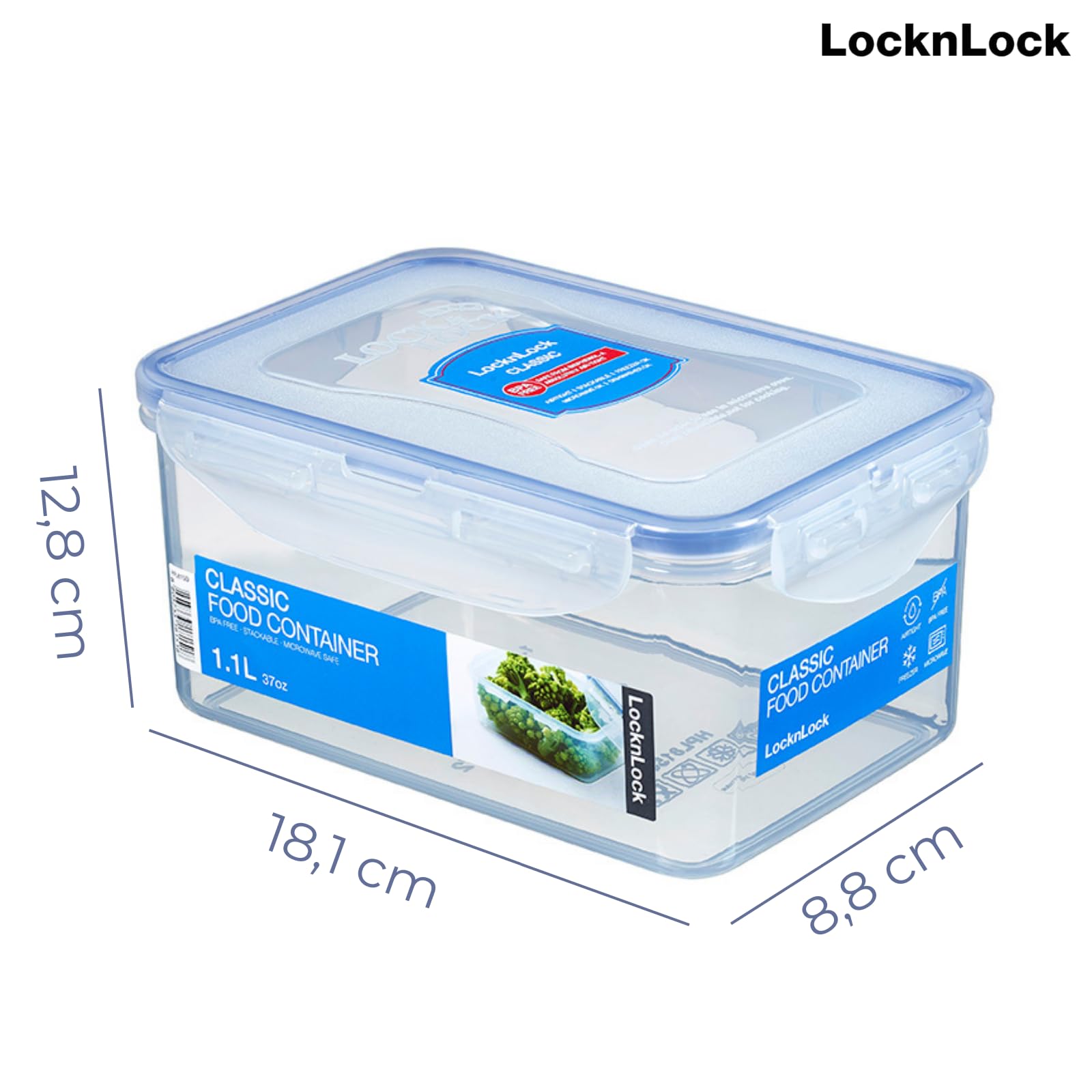 LocknLock CLASSIC Frischhaltedose | 1,9 L | 20,5 x 13,4 x 11,8 cm | 100 % luft- und wasserdichte Vorratsdose | Spülmaschinen-, und Mikrowellengeeignet | BPA-Frei | 4-fach Sicherheits-Verschluss