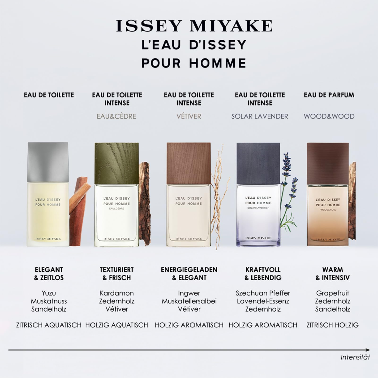 • VERFÜGBARE GRÖSSEN: Dieses Eau de Toilette von Issey Miyake ist in 75ml, 125ml und 200ml erhältlich. Eine zeitlose und stilvolle Ergänzung Ihrer Duft-Kollektion, die die spritzige Frische der Yuzu-Noten mit dem erdigen Charakter von Sandelholz vereint.