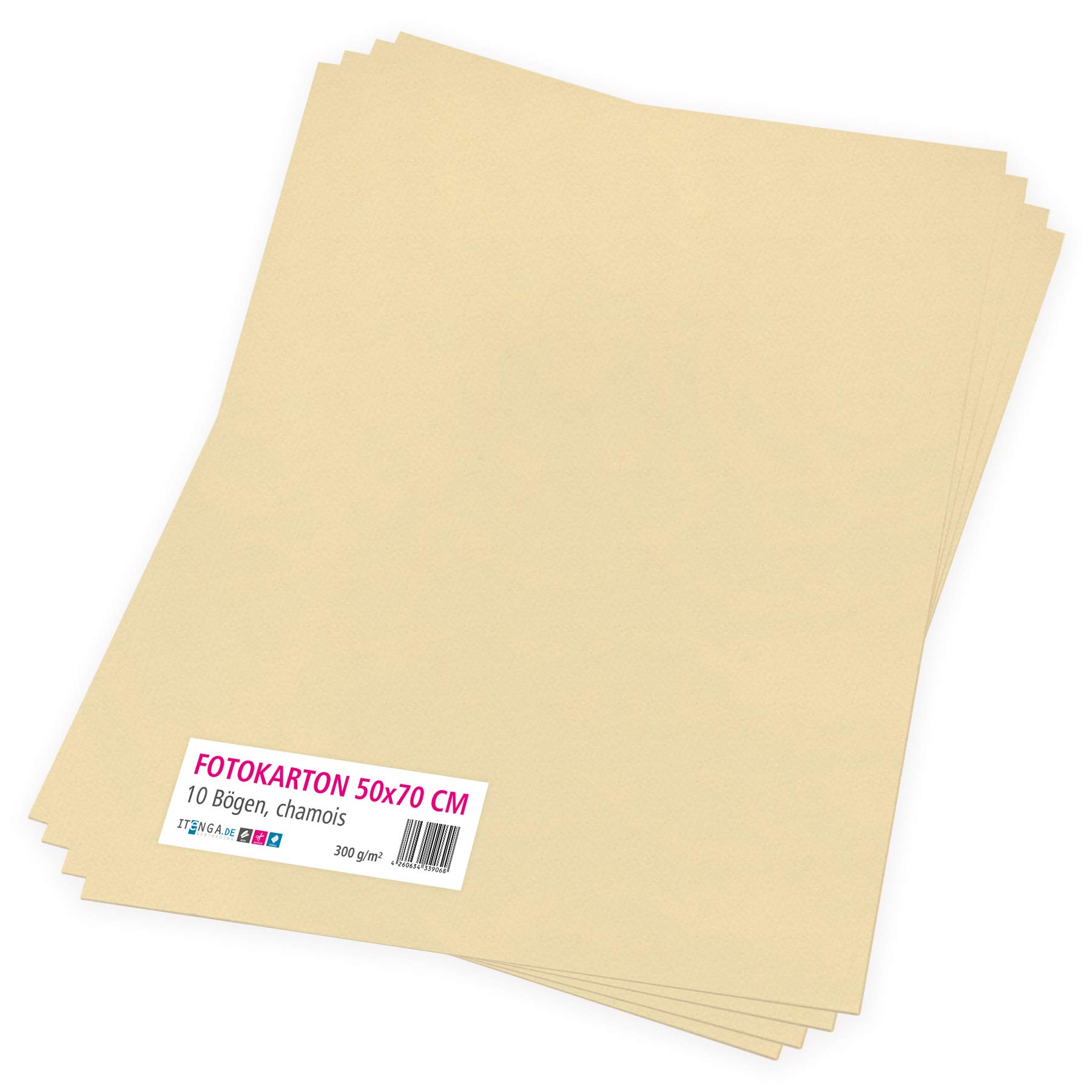 itenga Fotokarton 10 Blatt 50 x 70 cm 300 g/qm - Tonpapier Tonkarton Druckerpapier Bastelpapier Bogen durchgefärbt zum kreativen Gestalten und Basteln (Chamois)