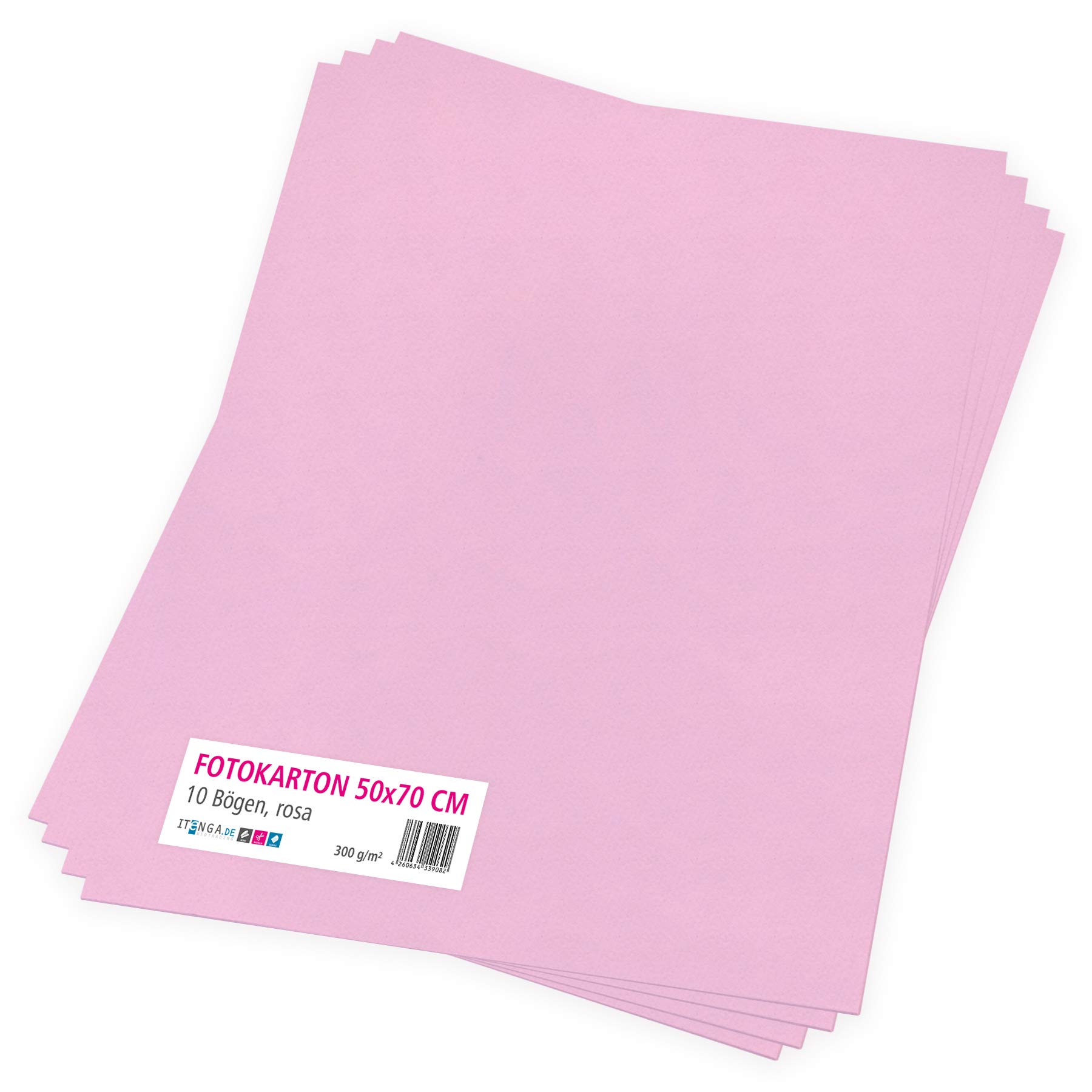 itenga Fotokarton 10 Blatt 50 x 70 cm 300 g/qm - Tonpapier Tonkarton Druckerpapier Bastelpapier Bogen durchgefärbt zum kreativen Gestalten und Basteln (Rosa)