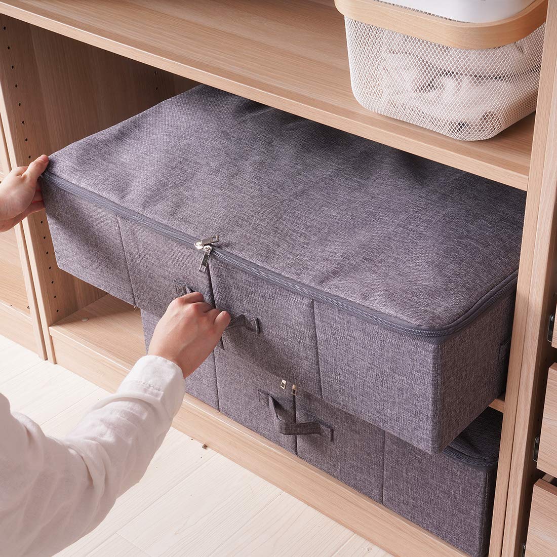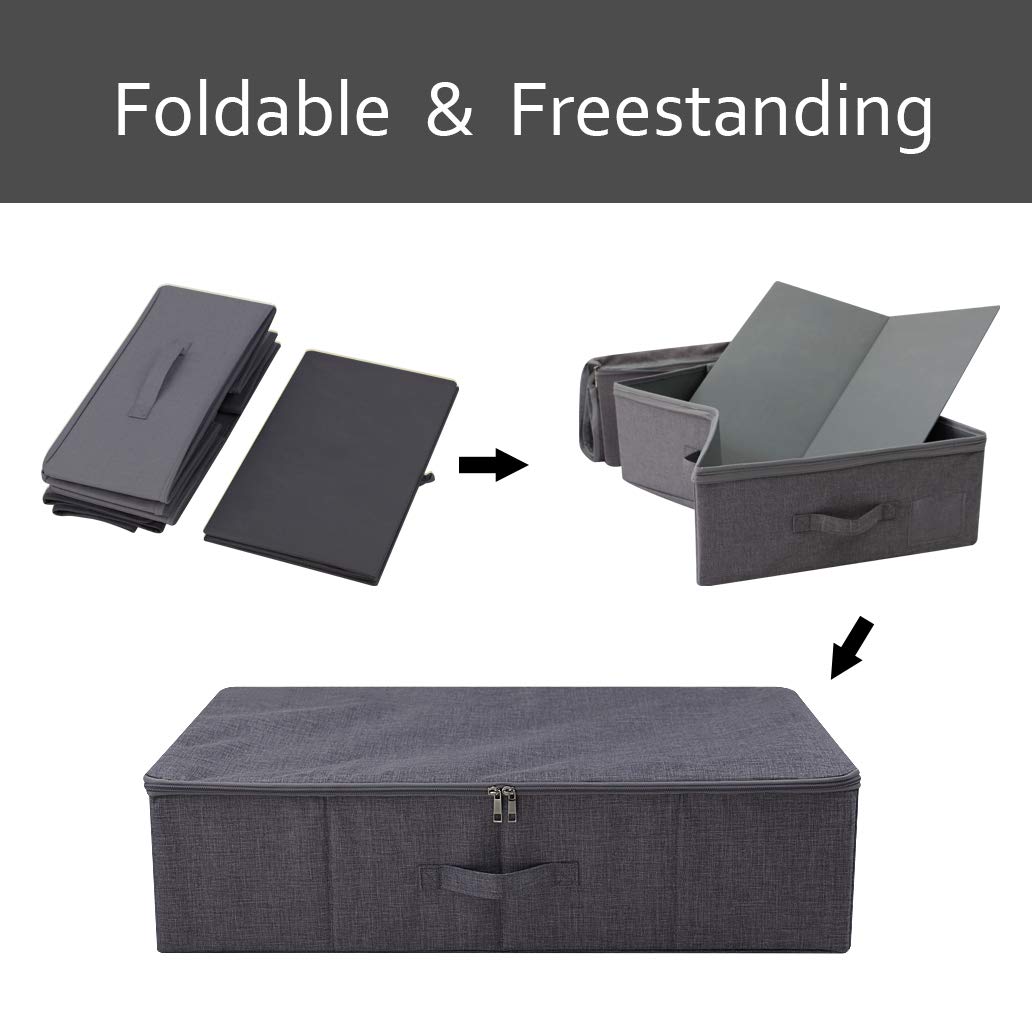 iwill CREATE PRO Unterbett-Aufbewahrungsboxen für Bettwäsche, Kleidungsstücke, Bettdecken, Decken, Schuhe, faltbarer Stoff, starr, Unterbett-Aufbewahrungsbehälter mit Reissverschluss, waschbar,