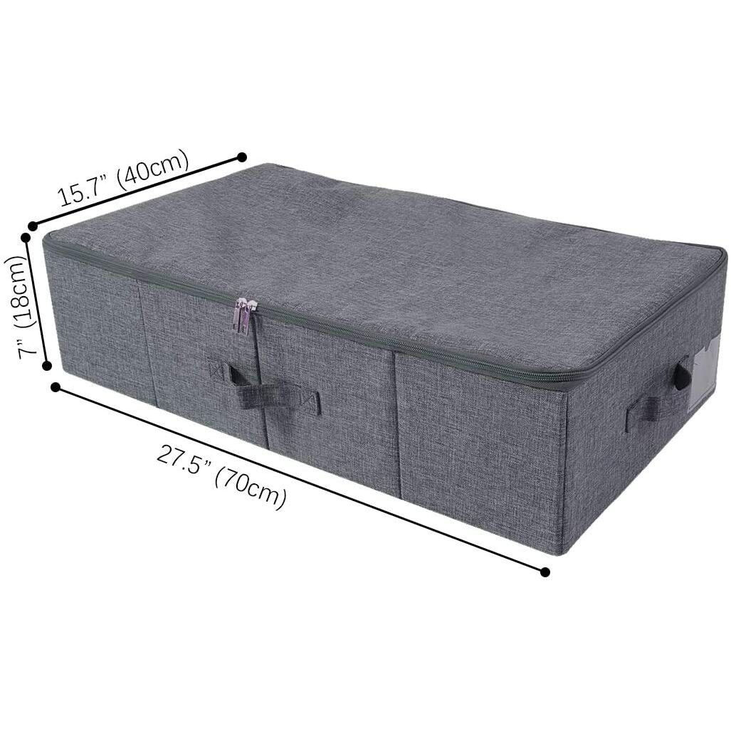 2er-Pack, faltbare Unterbett-Aufbewahrungsboxen mit Reissverschlussabdeckung, Aufbewahrungsbehälter aus festem Stoff für Decken, Kleidung, Schuhe, Spielzeug, staubdicht und waschbar, Schwarz Grau