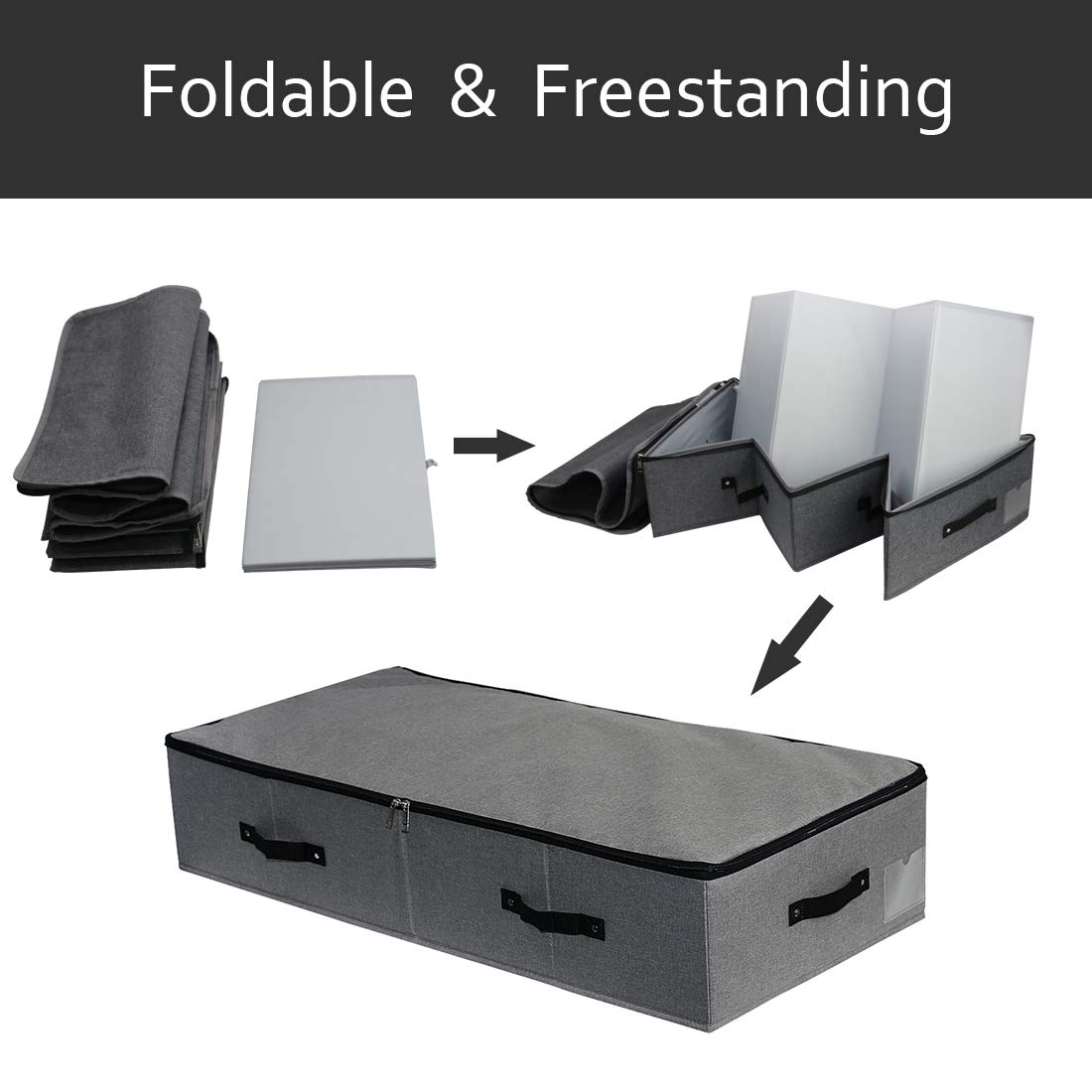 iwill CREATE PRO Extra Länge Unter Bett Aufbewahrung Organisation Behälter für Schuhe, Kleidung, Bettwäsche, 90 * 42 * 18 cm, Schwarz Grau