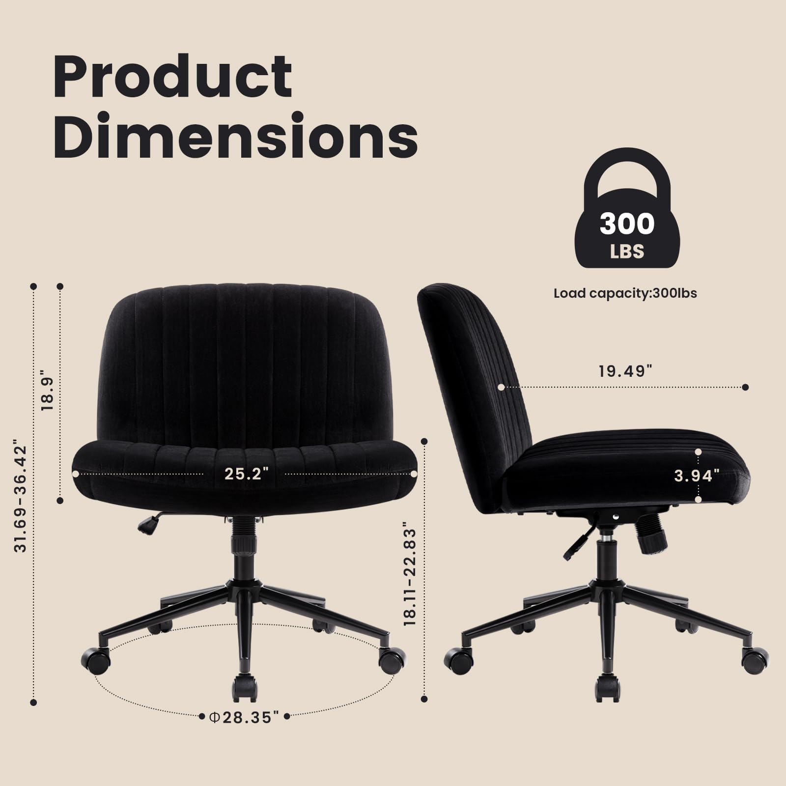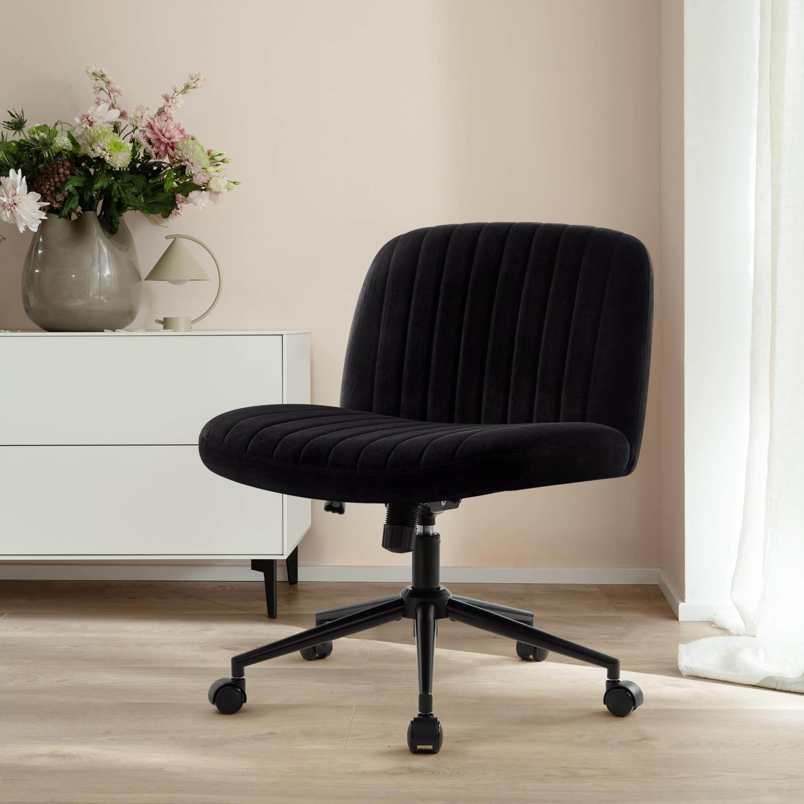 IWMH Bürostuhl ohne Armlehnen,Höhenverstellbar Drehstuhl mit Rollen,Schreibtischstuhl mit Stoffpolsterung,Lesesessel mit breiterem Kissen zum Sitzen im Schneidersitz (Schwarz mit Rollen)