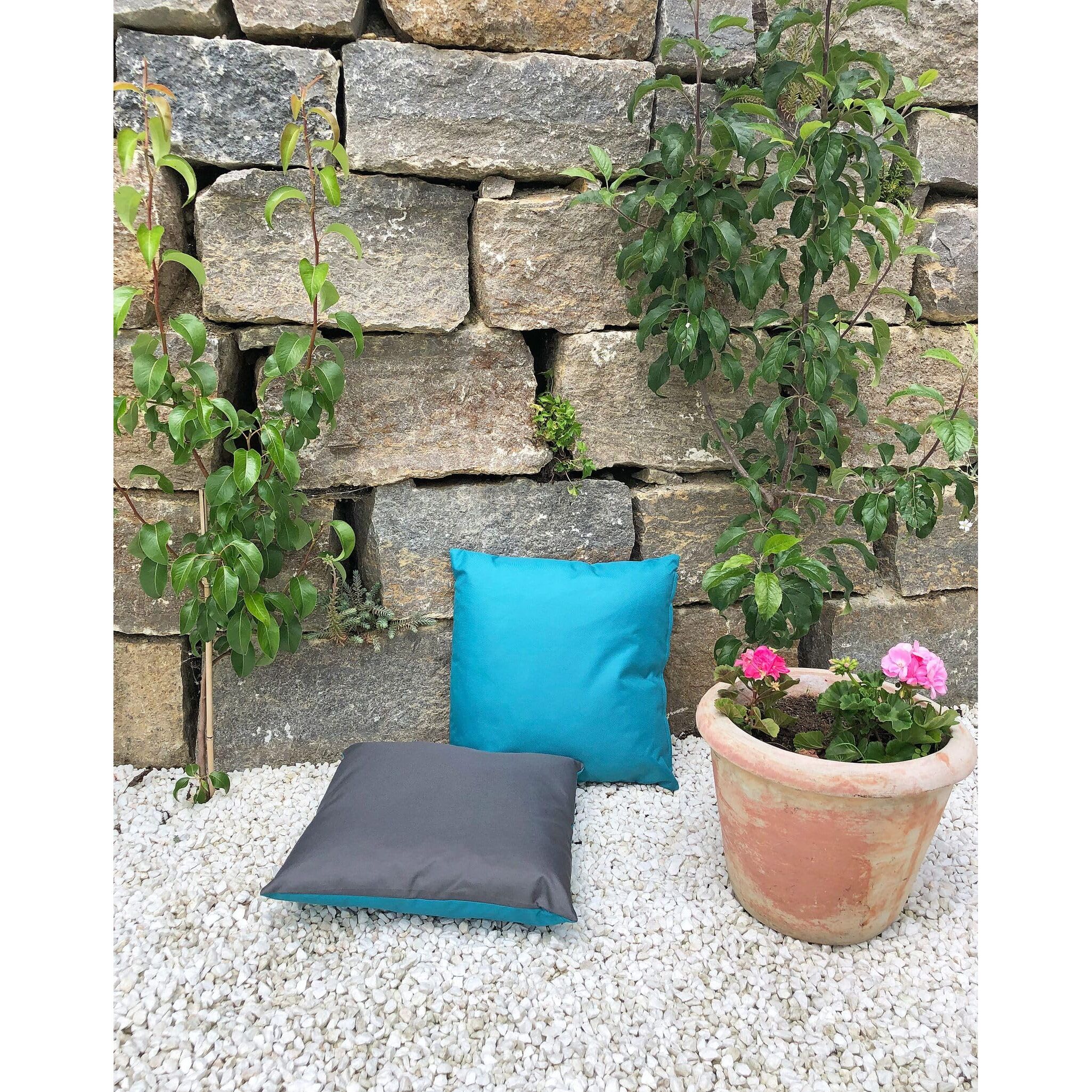 JACK 2-farbiges Wende Outdoor Lounge Kissen 45x45cm Dekokissen inkl. Füllung Wasserfest Sitzkissen Garten Stuhl Lotus Effekt, Farbe:Petrol - Anthrazit