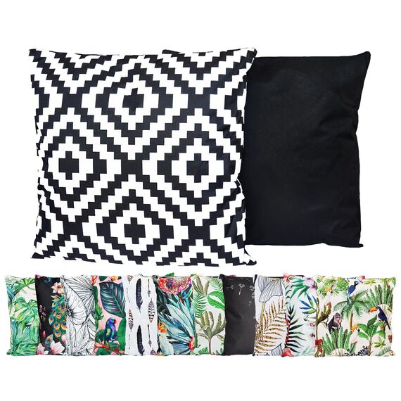In- & Outdoor Dekokissen mit Motiv 45x45cm der Marke 'JACK'Frühling, Sommer, Herbst & Winter ist Gartenzeit für diese coolen, farbenfrohen und robusten Outdoorkissen. Was macht mehr Spass, als mit den richtigen Accessoires den Garten, den Balkon, den Wintergarten oder die Terrasse freundlich und extravagant dekorieren zu können? Mit dieser eleganten und äusserst dekorativen Kissen-Serie der aussergewöhnlichen Designserie 'Anna´s Collection' für den Innen- und Aussenbereich, gelingt Ihnen das im Handumdrehen. Durch ihre Optik sorgen diese farbenfrohen Wohn-Accessoires sofort für ein gemütliches Ambiente. Diese mit einer wasserresistenten Oberfläche ausgestatteten Sitzkissen sind sowohl Wasser-, als auch Schmutzabweisend wodurch ein dauerhafter und langlebiger Schutz der Oberfläche gegeben ist. Sie sind daher auch äusserst pflegeleicht und sehen - da man sie seltener waschen muss - viel länger 'wie neu' aus. Zusätzlich sind diese Kissenbezüge UV - Resistent und daher besonders lichtecht.Die Kissenfüllung besteht aus einer komfortablen und bequemen Hochbauschvliesfüllung (100% Polyester) und durch den verdeckten Marken-Reissverschluss lassen sie sich sehr einfach abziehen und bis 30 Grad in der Waschmaschine waschen.Eigenschaften:Exclusiv für die Firma JACK - Jetzt Alles Clever Kaufen - Marcus Thiele produziertFür Innen- und Aussenbereich geeignetRobust und strapazierfähigMasse ca. 45 x 45 x 8 cmMit verdecktem ReissverschlussBezug abziehbar & waschbar bei 30 GradGewicht der Kissenfüllung ca.: 350gGesamtgewicht Kissen ca.: 470gLOTUS EFFEKT! Wasser- und SchmutzabweisendBezug/Füllung aus 100% PolyesterPflegeleicht & SchnelltrocknendÖko - Tex Standard 100 SiegelLieferumfang: 1x Kissen (