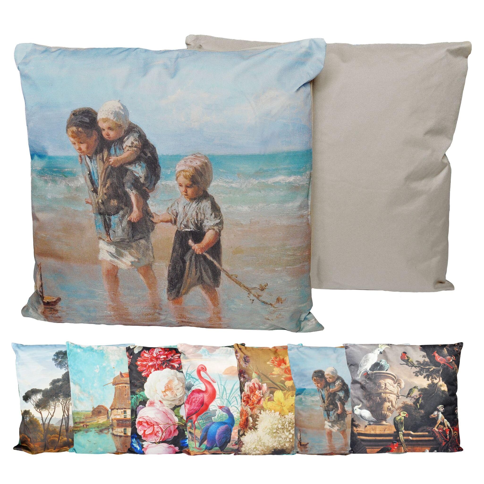 JACK Outdoor Lounge Kissen 45x45cm Motiv Dekokissen inkl. Füllung Wasserfest Sitzkissen Garten Stuhl, Farbe:Küstenleben