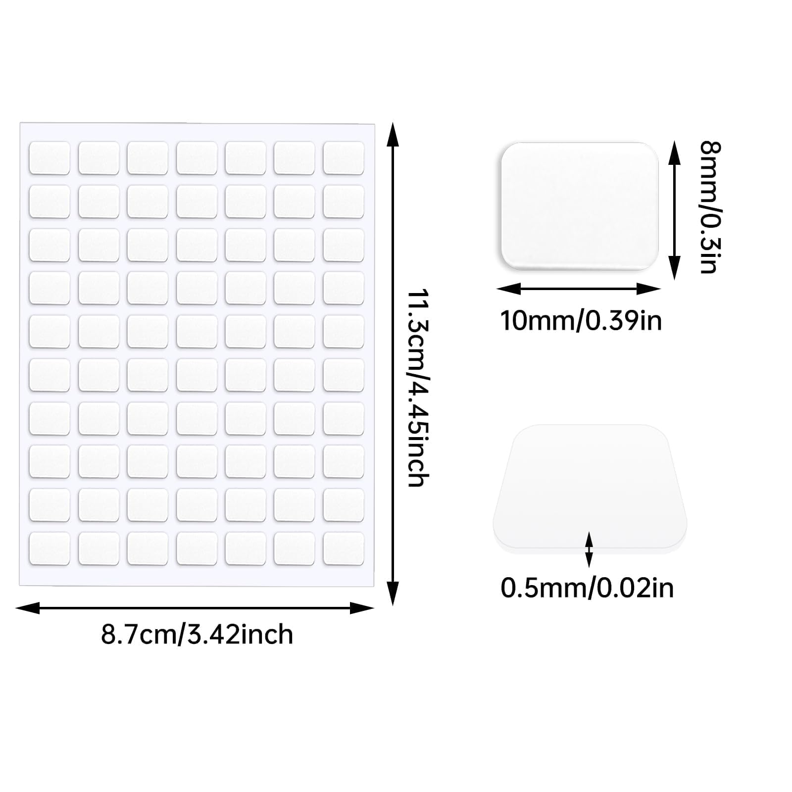 Detaillierte Beschreibung Name: Klebemasse Material: Acryl Grösse: 8 x 10 mm / 0,32 x 0,9 Zoll Dicke: 0,5 mm Farbe: Transparent Menge: 2 Blätter / 140 Stück