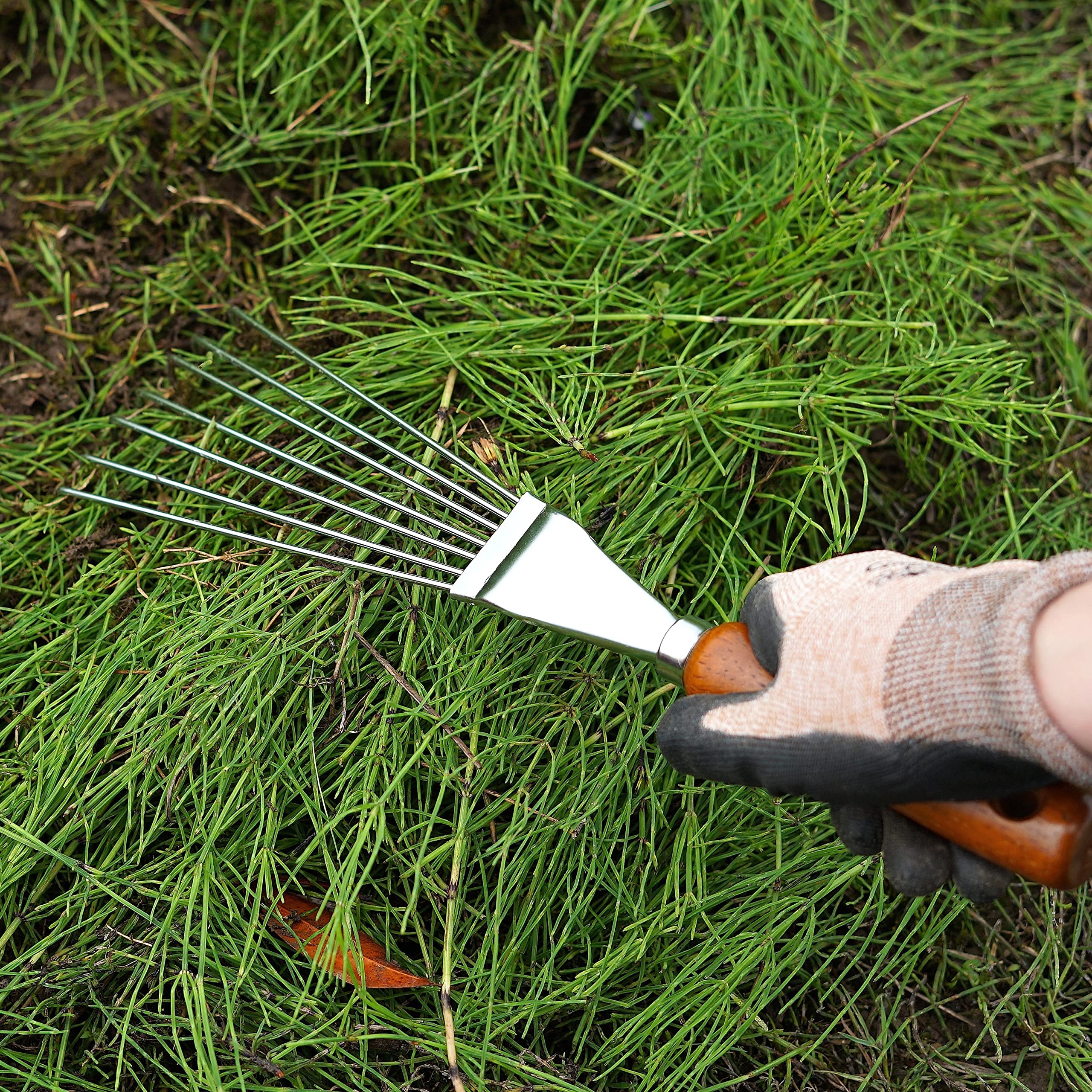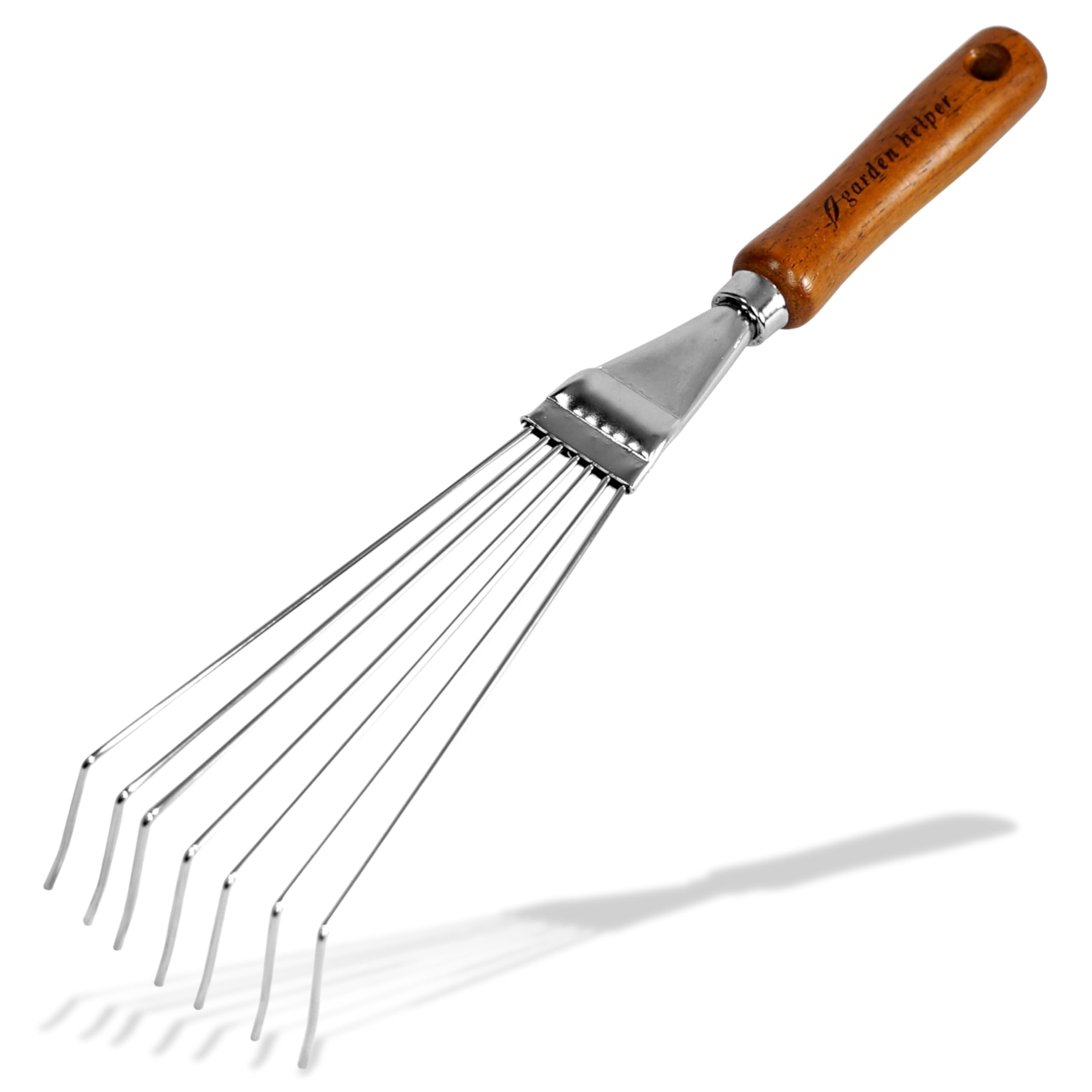 Japanisches Handrechen Gartenwerkzeug Japanischer Stahl mit Holzgriff Kleiner Rechen für Blätter Handheld Garten Reinigungswerkzeug Made in Japan Silber