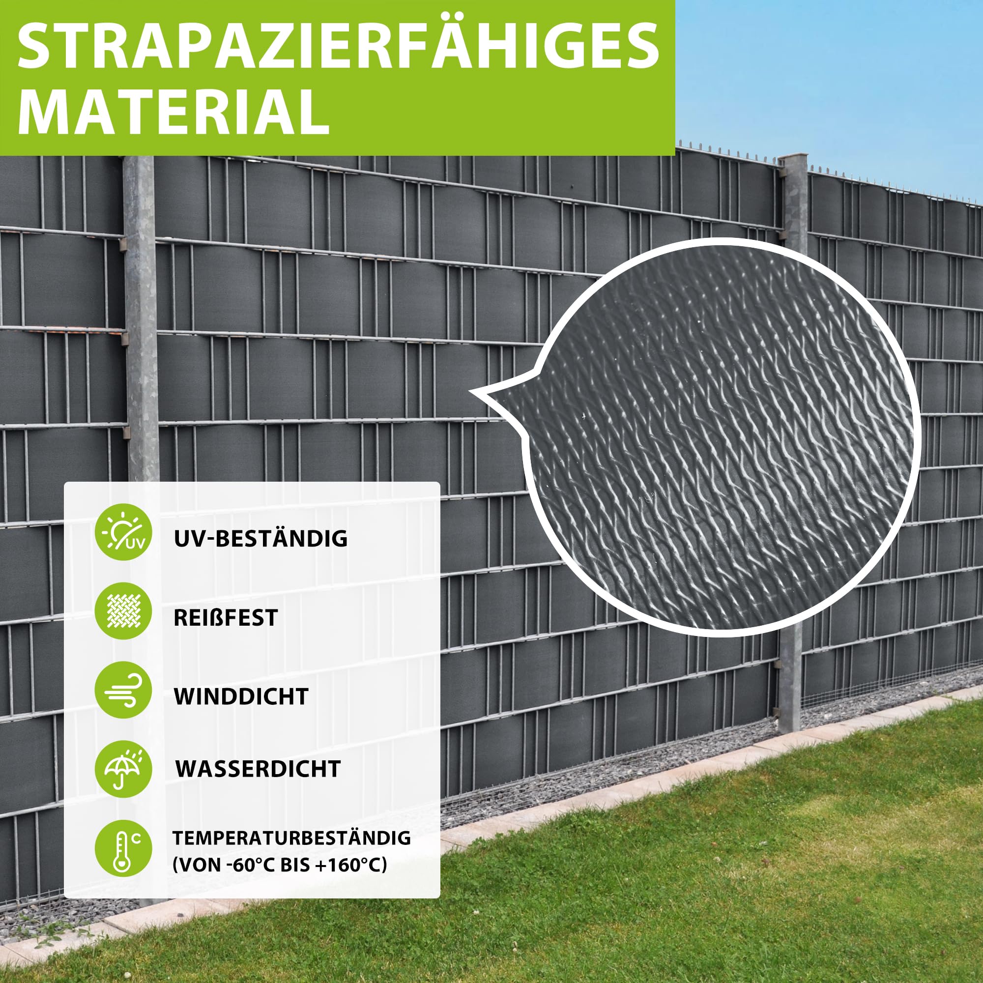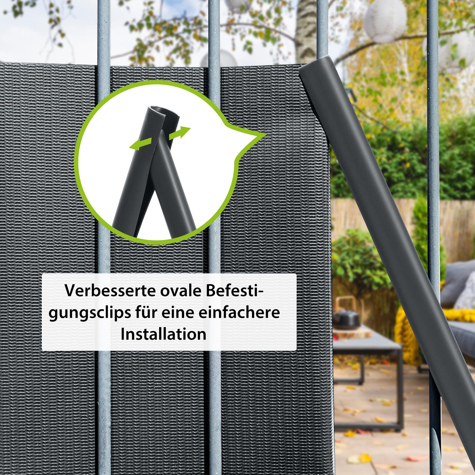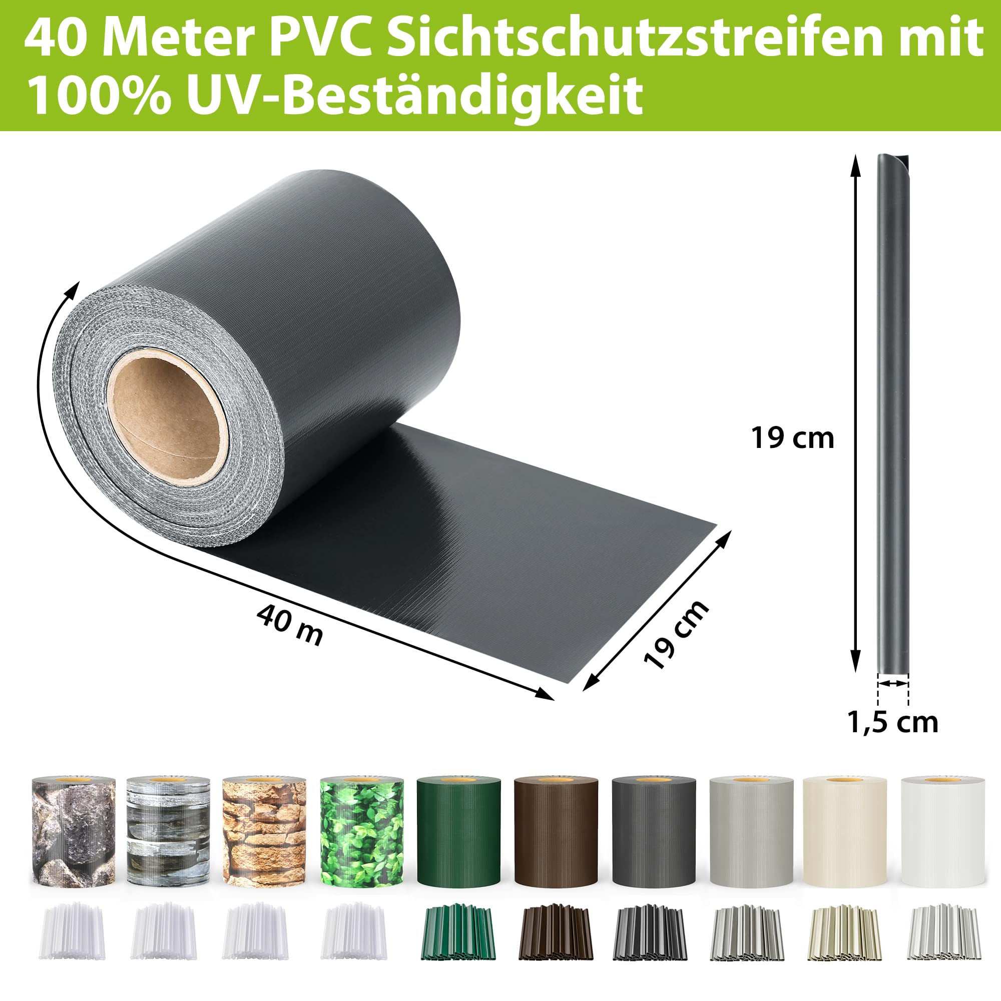 jarolift PVC Sichtschutzstreifen Sichtschutz Gartenzaun Stabmattenzaun Balkon, Wasser und Winddicht Komplettset mit 25 Clips, 40 m (L) x 19 (B) cm, Anthrazit
