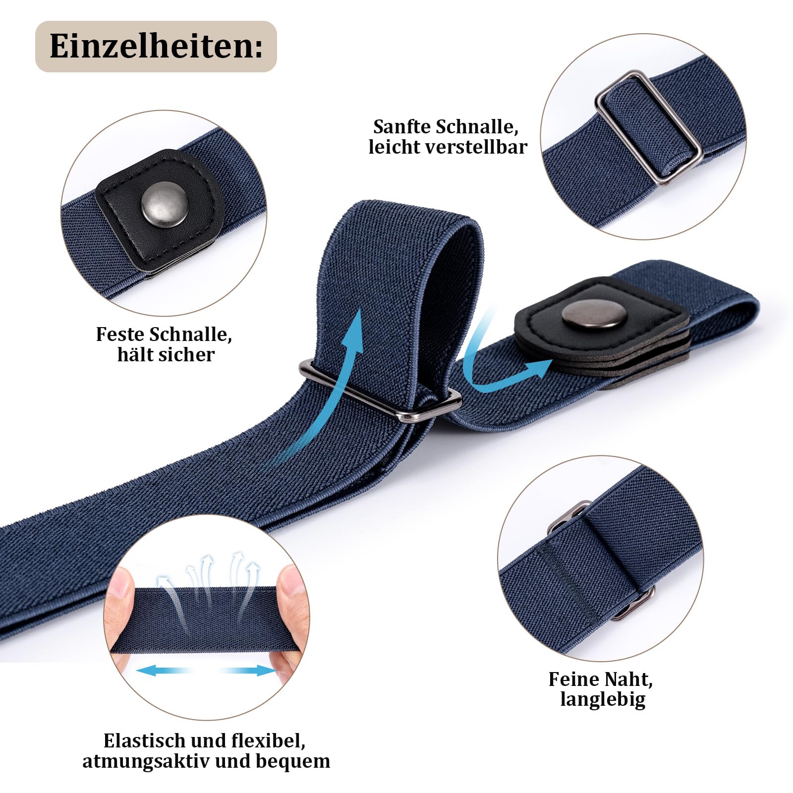 Gürtel ohne Schnalle - Verabschieden Sie sich von unkomfortablen Schnallen!Im Gegensatz zu herkömmlichen Gürteln spielt dieser Gürtel ohne Schnalle nicht mehr mit der Schnalle,wenn Sie den Gürtel ohne Schnalle in Ihre Jeans stecken. Erleichtert Ihnen das Leben.Drücken Sie einfach den Knopf einmal,extrem einfach zu bedienen,Geniesse dein Leben, spare deine Zeit.Vielseitige Tragemöglichkeiten - Dieser Gürtel enthält einen praktischen, verstellbaren Ring, der durch die Gürtelschnalle geführt werden kann, um Ihnen zwei verschiedene Tragevarianten zu ermöglichen. Wenn Sie den runden Ring verwenden, öffnen Sie den Knopf auf einer Seite, stellen Sie die gewünschte Grösse ein und schnappen Sie den Knopf in den Ring, um den Gürtel zu schliessen. Ohne den runden Ring können Sie die Knöpfe auf beiden Seiten Ihrer Jeans befestigen.