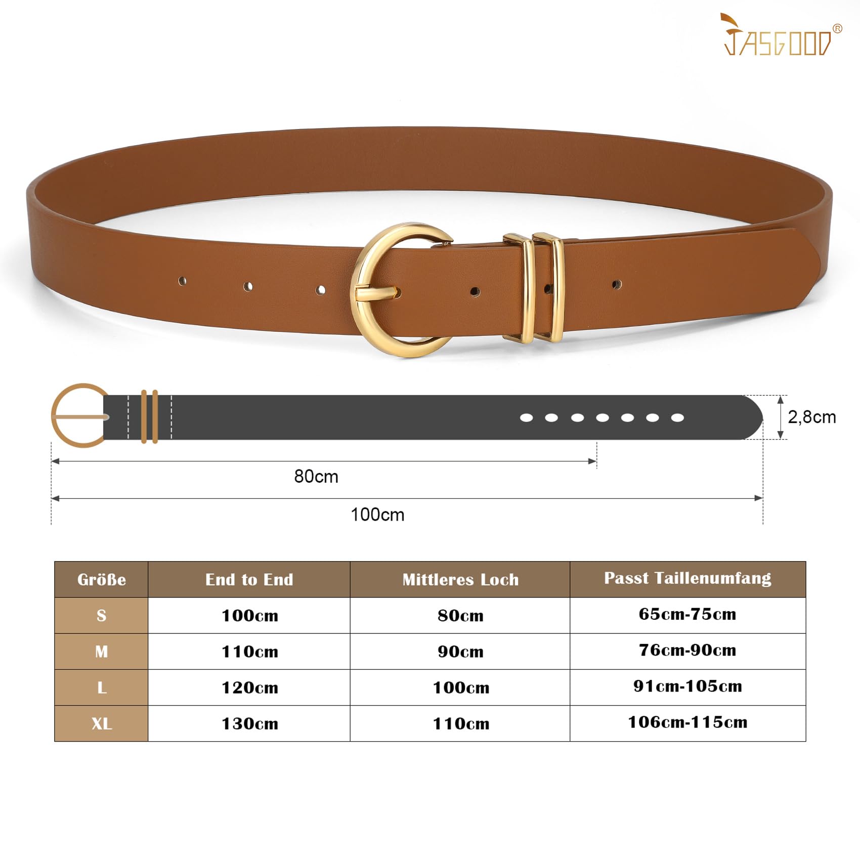 JasGood Damen Ledergürtel für Jeans Hosen Kleider Mode Goldschnalle Damen Leder Gürtel