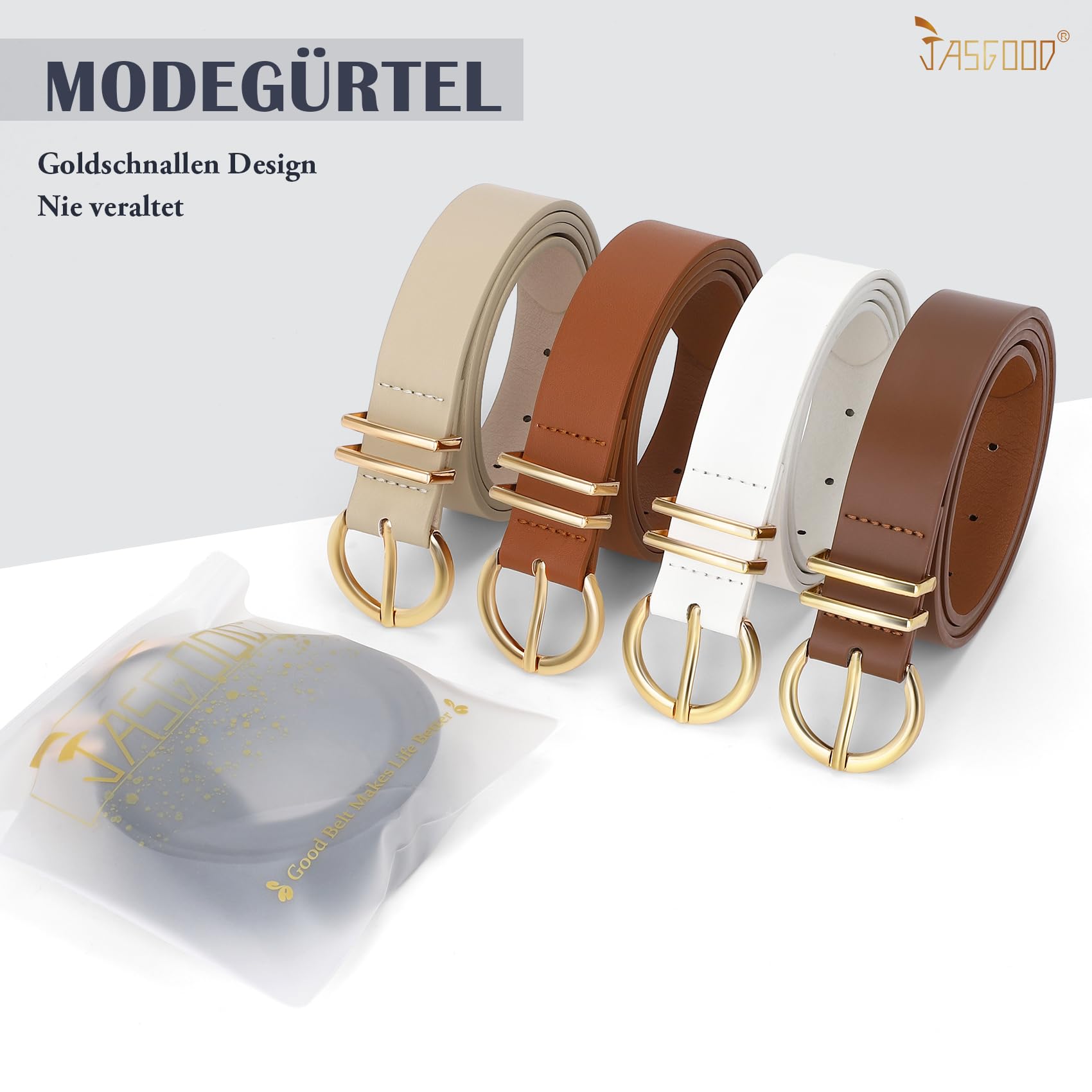 JasGood Damen Ledergürtel für Jeans Hosen Kleider Mode Goldschnalle Damen Leder Gürtel