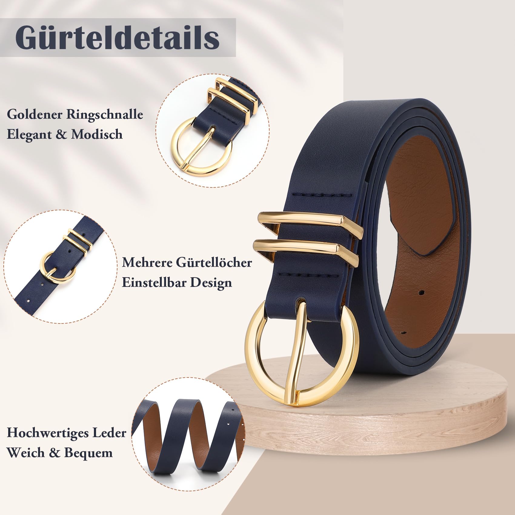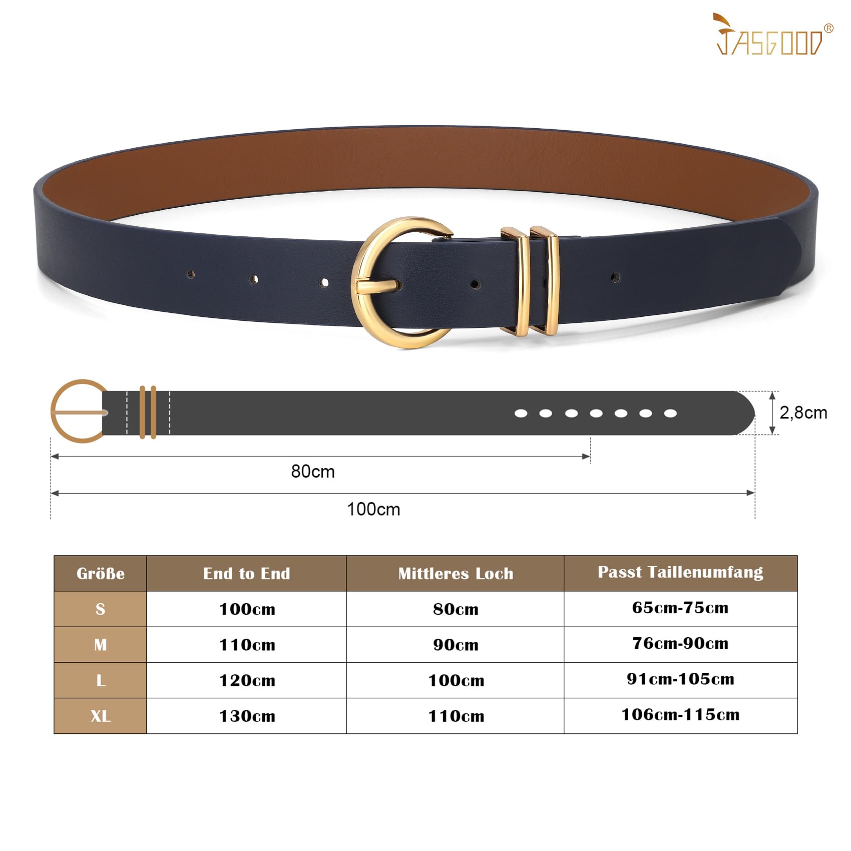 JasGood Damen Ledergürtel für Jeans Hosen Kleider Mode Goldschnalle Damen Leder Gürtel