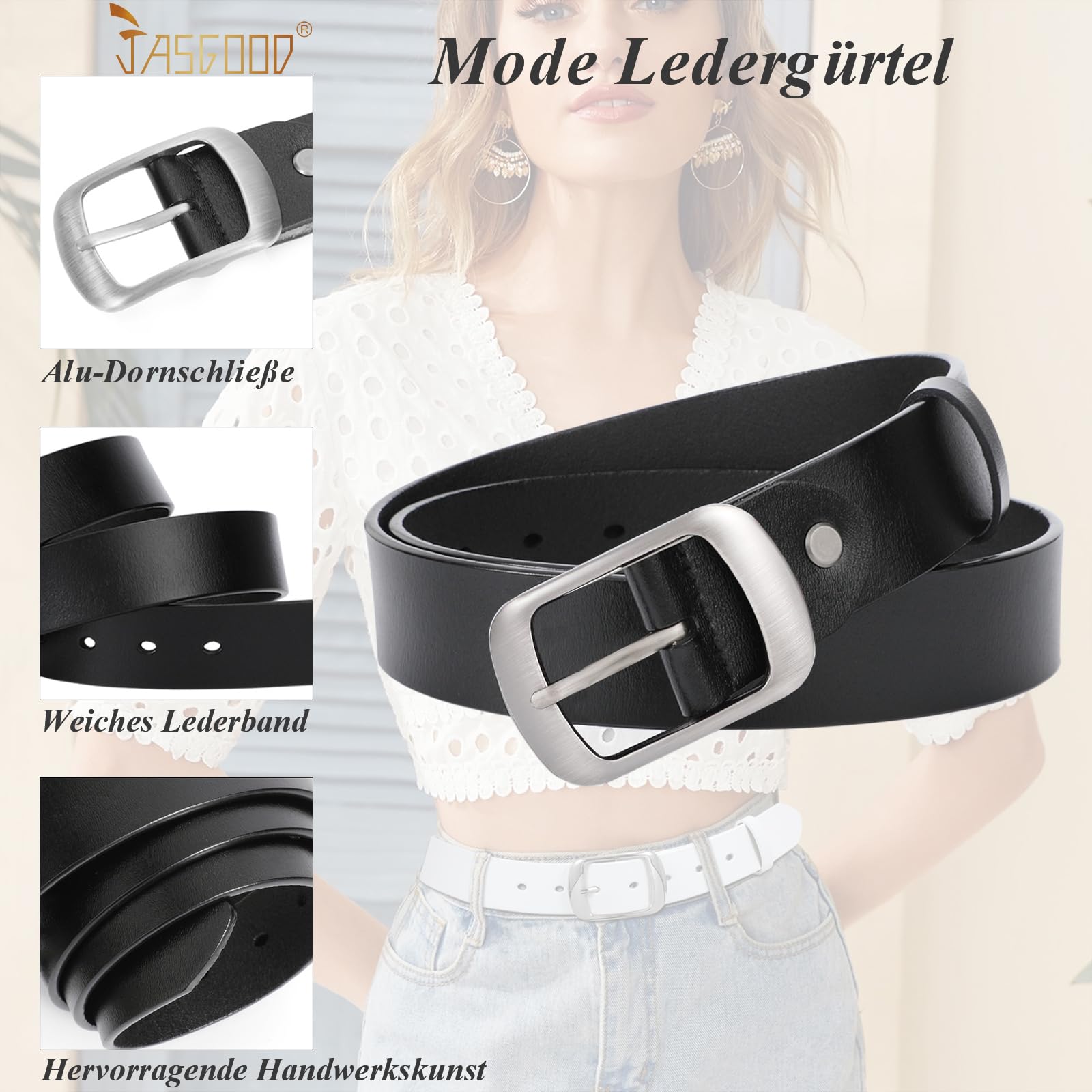 JasGood Damen Ledergürtel für Jeans Hosen Mode Kleid Gürtel für Damen mit Dornschliesse