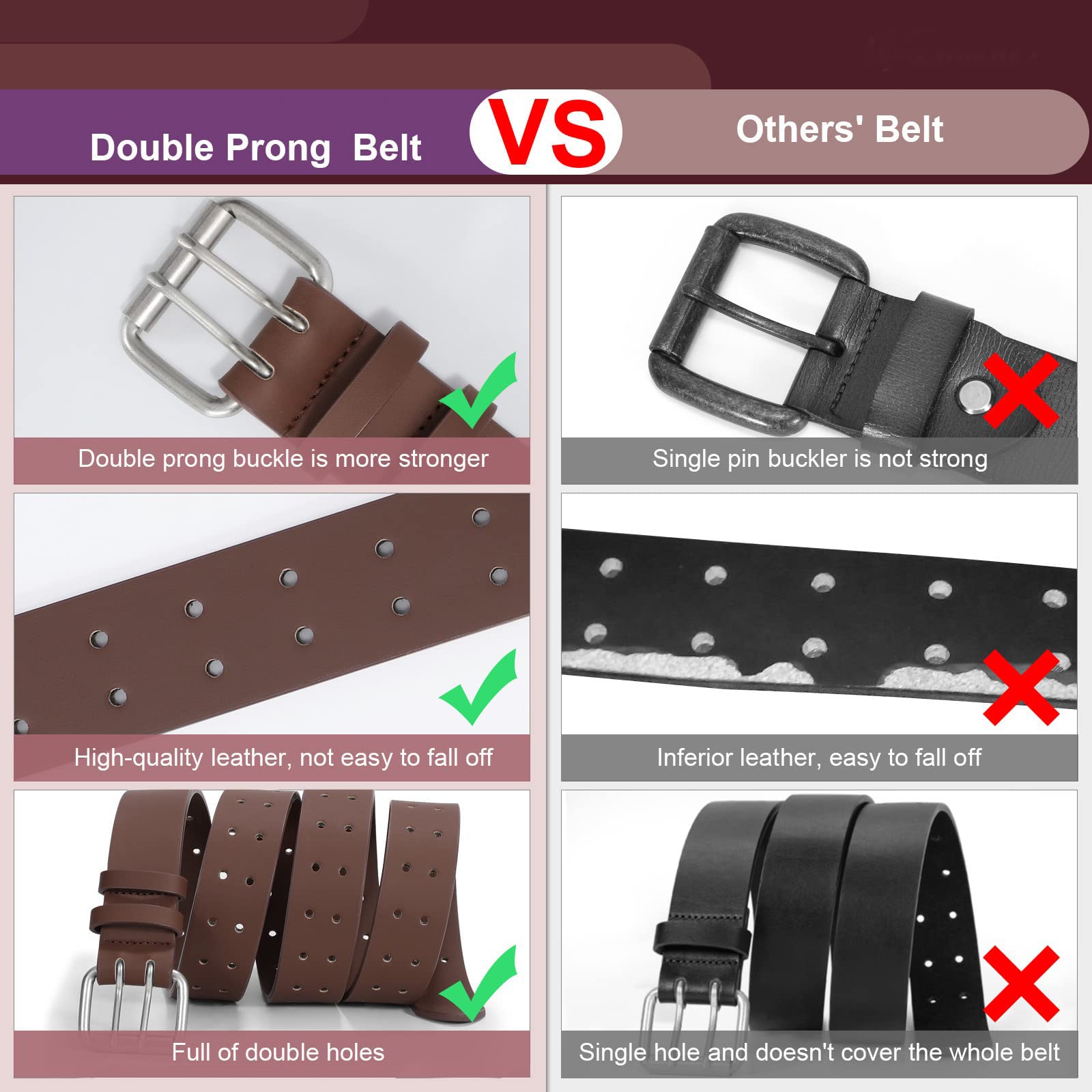 JasGood Herren Doppel Prong Ledergürtel Casual Work Heavy Duty Gürtel Doppel Ösen Gürtel für Jeans