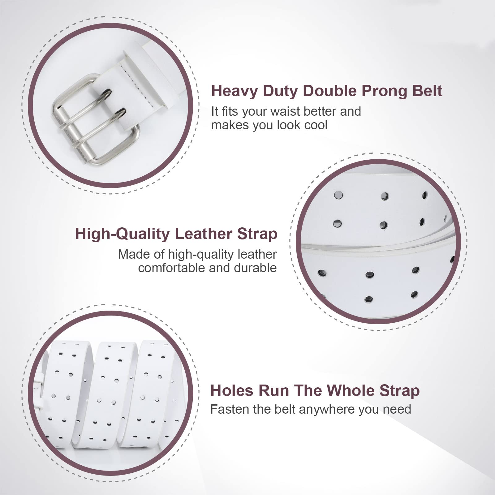 JasGood Herren Doppel Prong Ledergürtel Casual Work Heavy Duty Gürtel Doppel Ösen Gürtel für Jeans