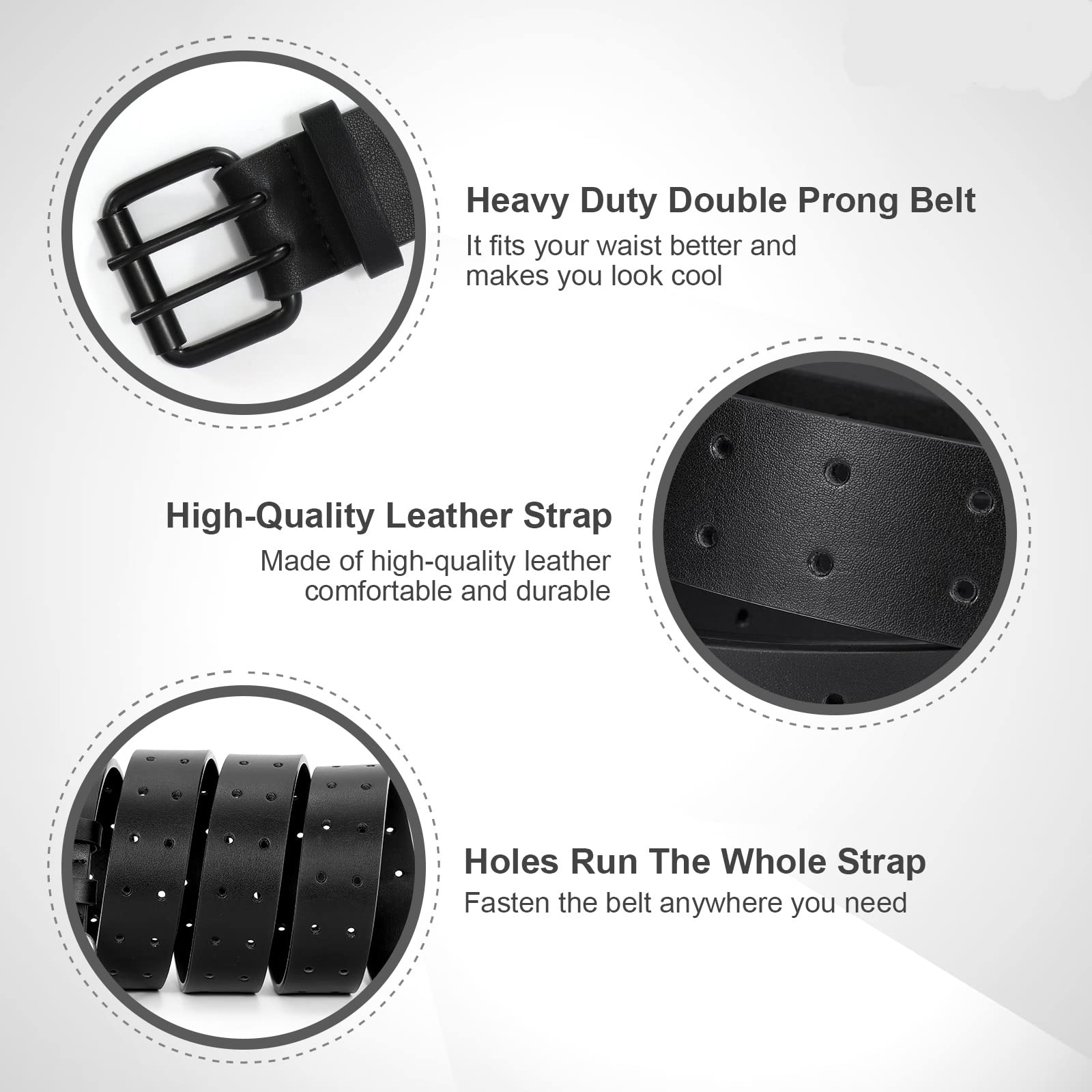 JasGood Herren Doppel Prong Ledergürtel Casual Work Heavy Duty Gürtel Doppel Ösen Gürtel für Jeans
