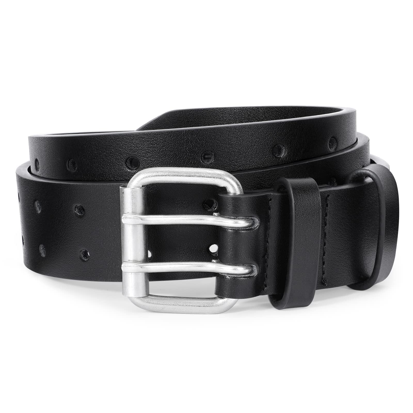 JasGood Herren Doppel Prong Ledergürtel Casual Work Heavy Duty Gürtel Doppel Ösen Gürtel für Jeans