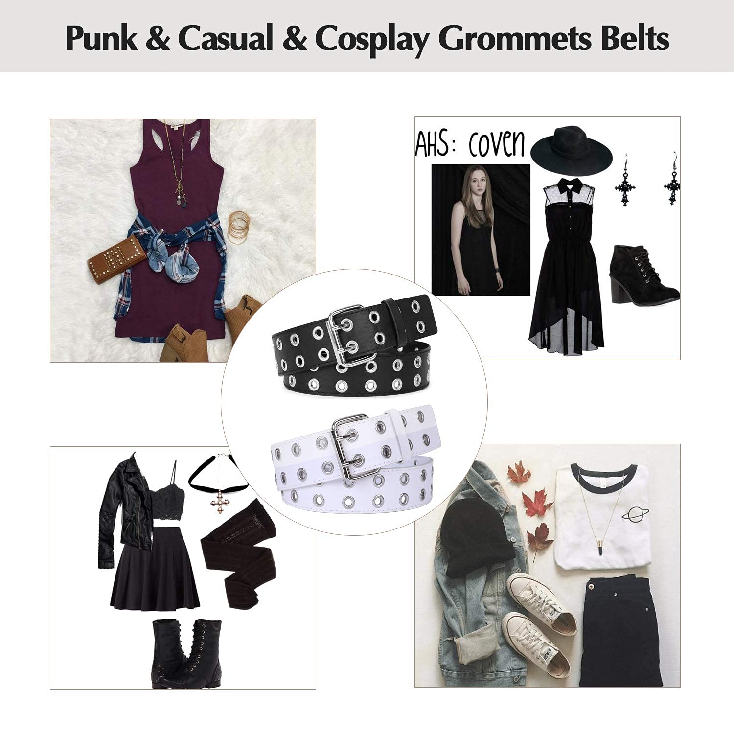 JasGood Punk Gürtel Damen und Herren Doppelloch Gürtel mit Punk Style Cosplay Hip Hop Rock für Gothic-Outfits