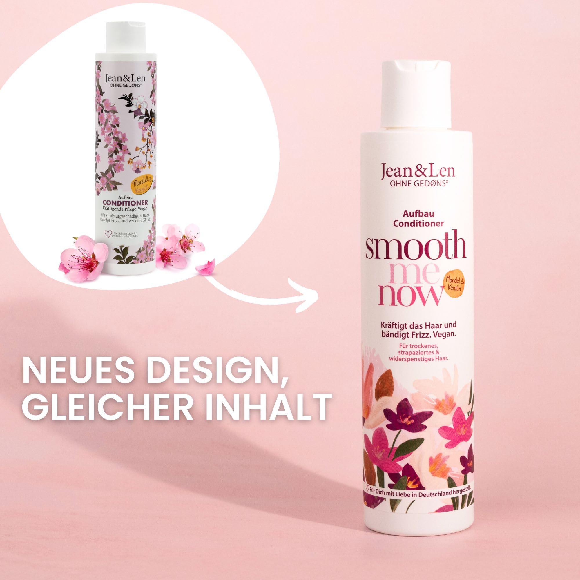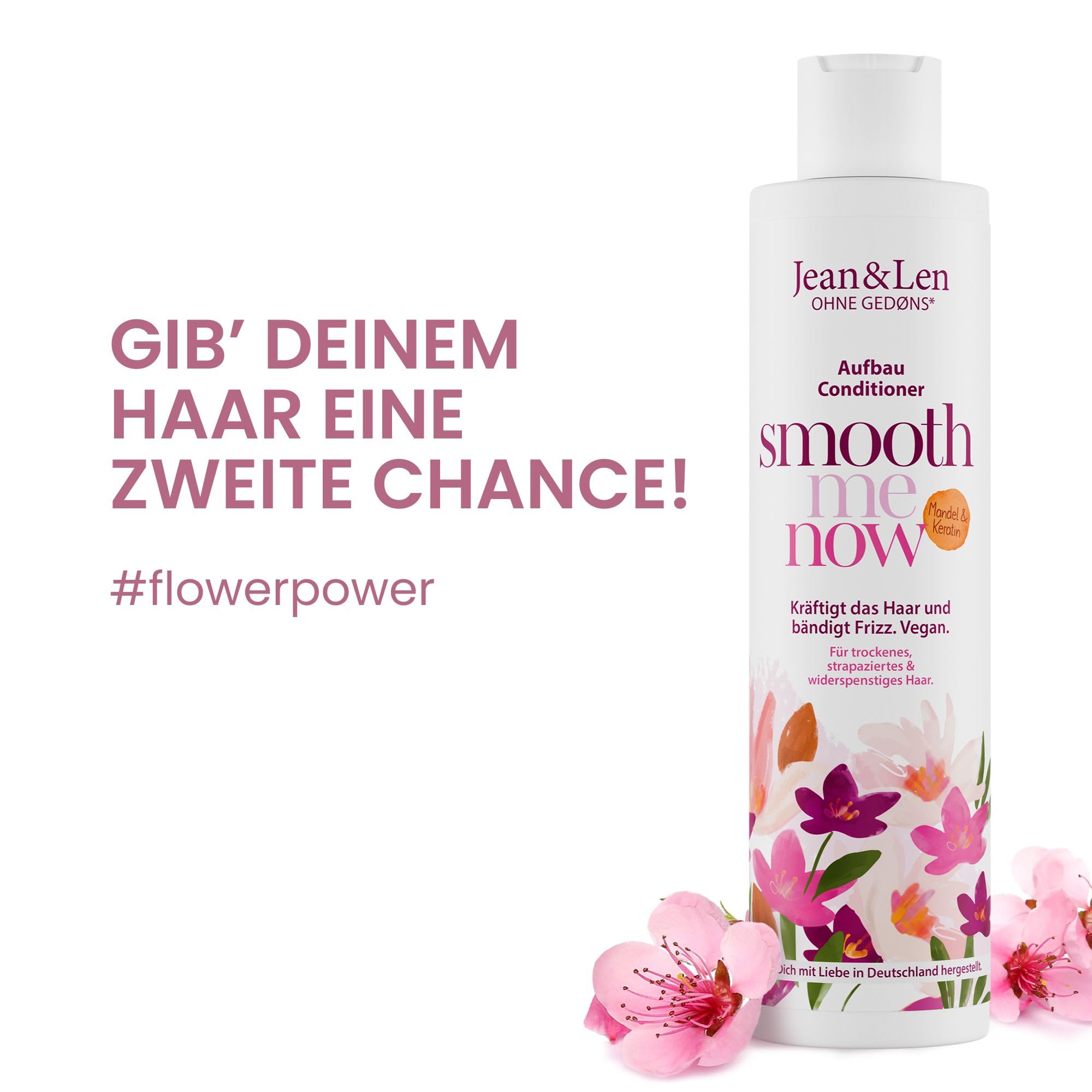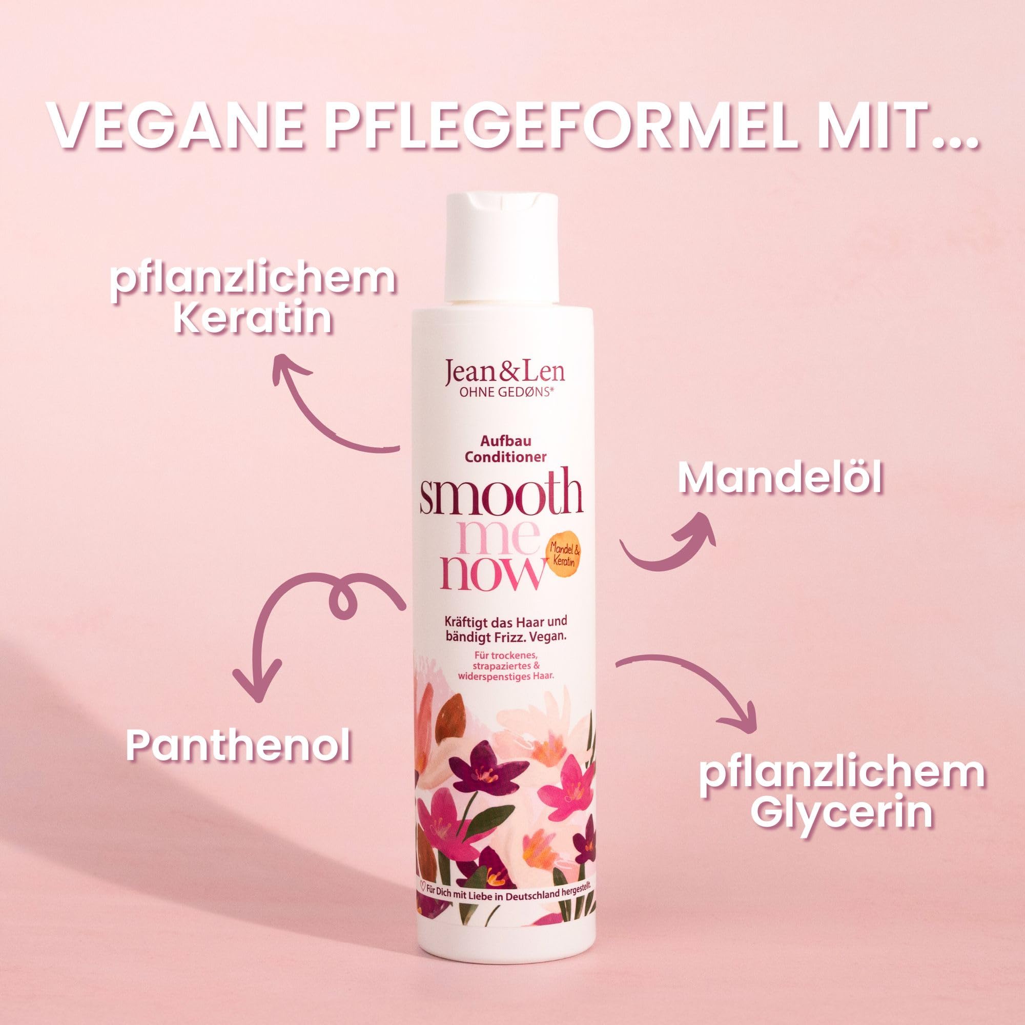 Jean & Len Conditioner Aufbau Mandel & Keratin, für trockenes & strapaziertes Haar, kräftigt das Haar, bändigt Frizz und verleiht Glanz, Haarconditioner ohne Silikone & Parabene, vegan, 300 ml