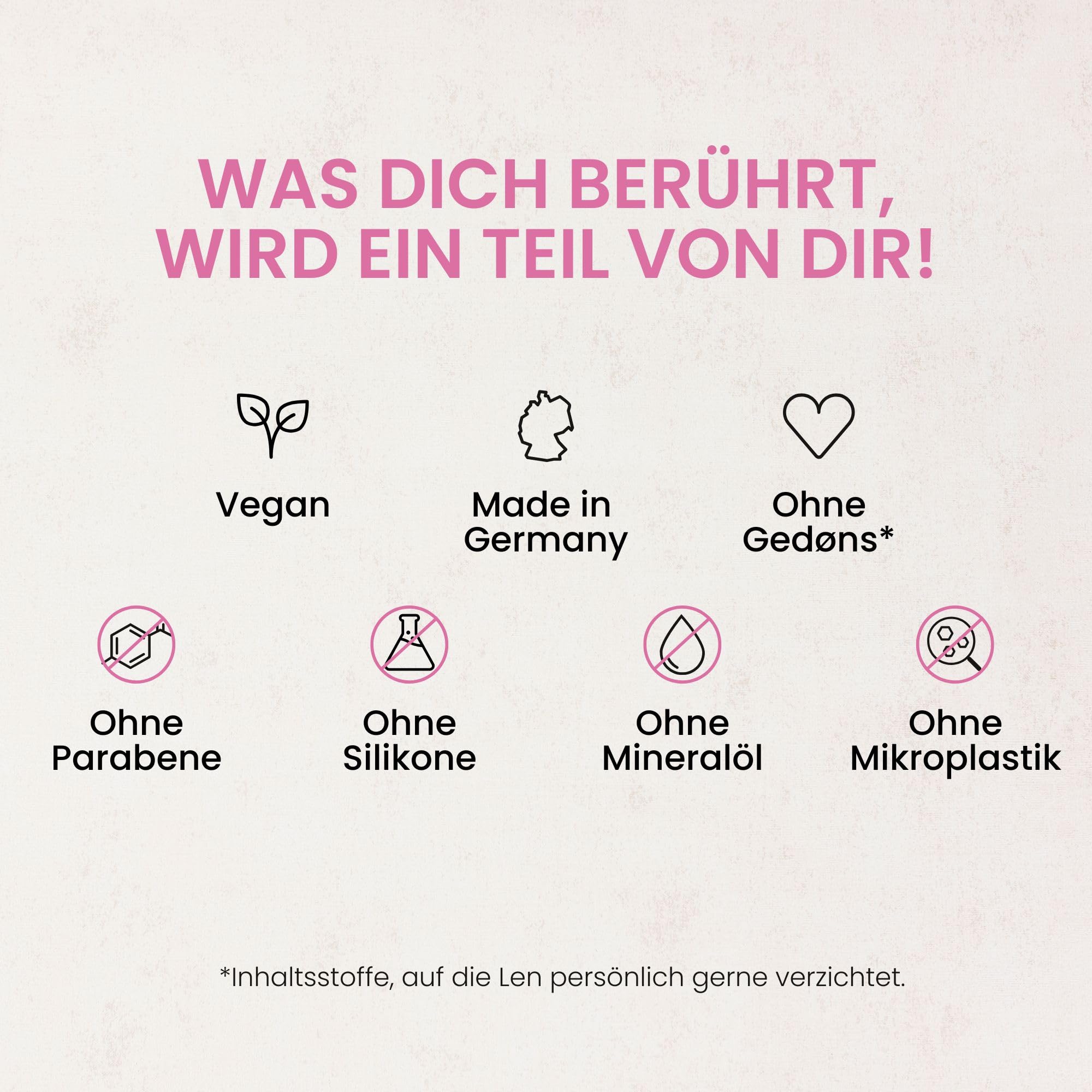 • Ohne Gedøns: Gedøns sind für uns Inhaltsstoffe, auf die Gründer Len persönlich gerne verzichtet – Das Produkt ist natürlich vegan und kommt ohne Silikone, Parabene, Mineralöl sowie Mikroplastik aus