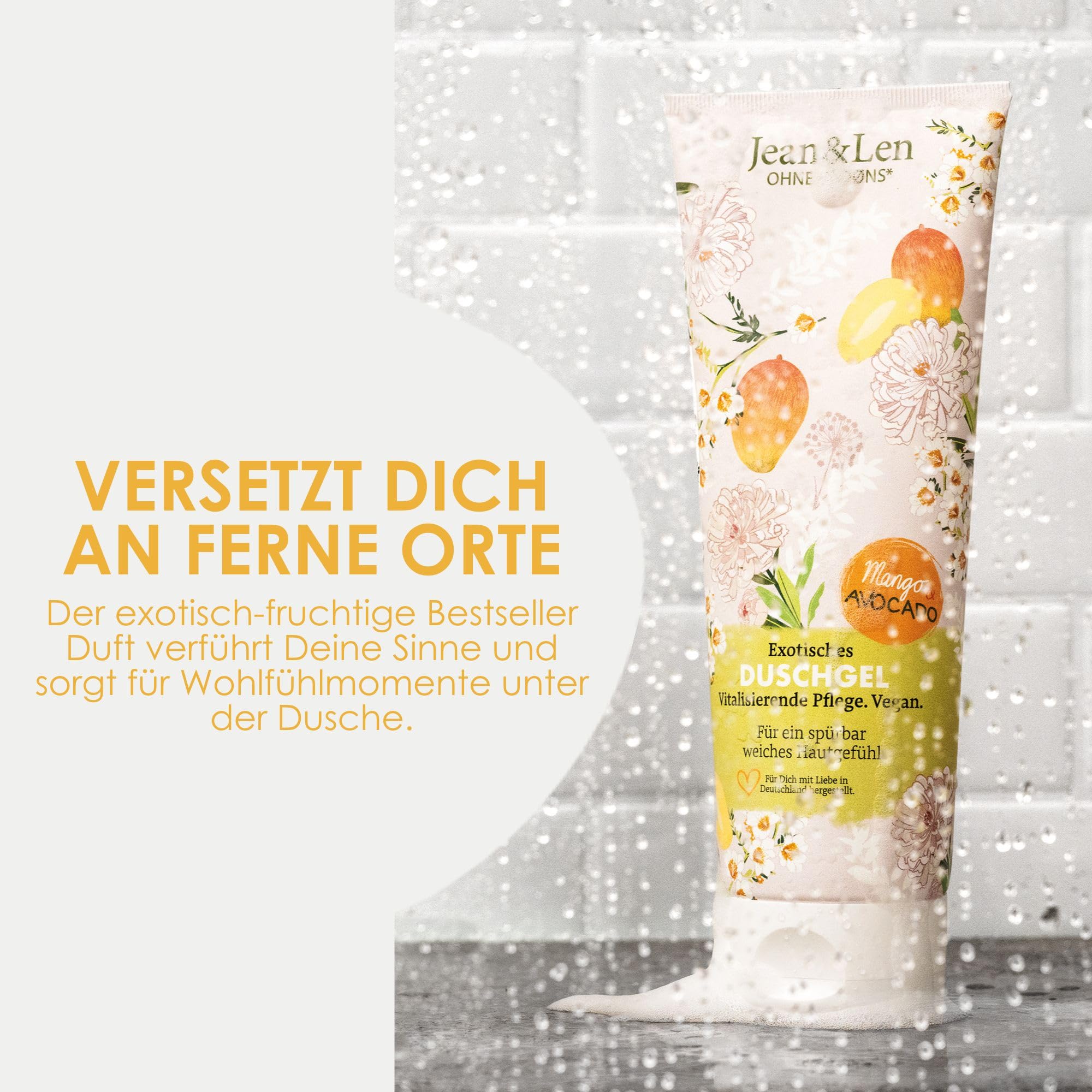 Jean & Len Exotisches Duschgel Mango & Avocado, vitalisierende Formulierung für ein spürbar geschmeidiges Hautgefühl, sanfte Hautreinigung, ohne Parabene & Silikone, vegan, Duschgel, 250 ml