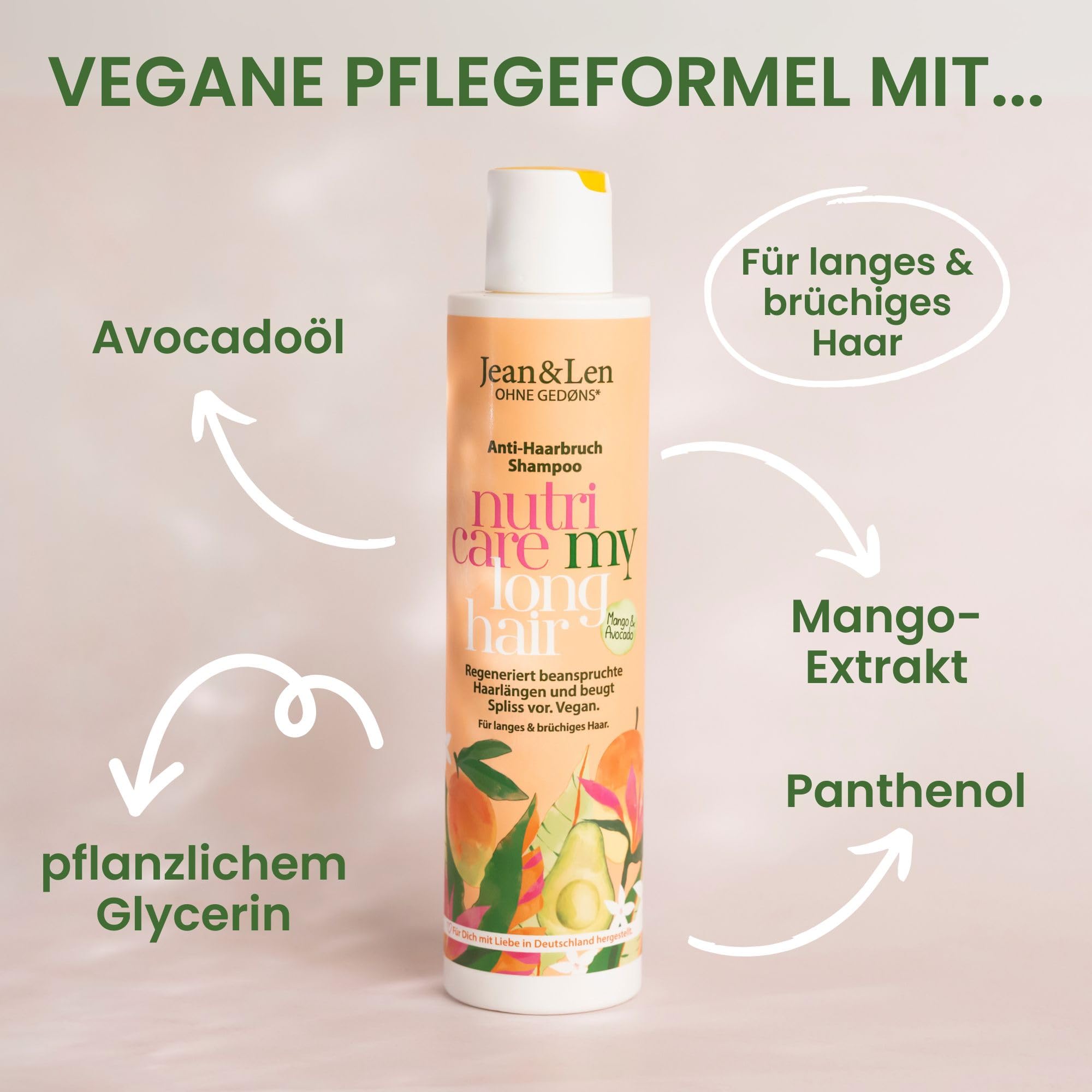 Jean & Len Nutri Care Shampoo Mango & Avocado 300 ml – Für Langes & Geschädigtes Haar, Regenerierend, Fruchtig & Vegan
