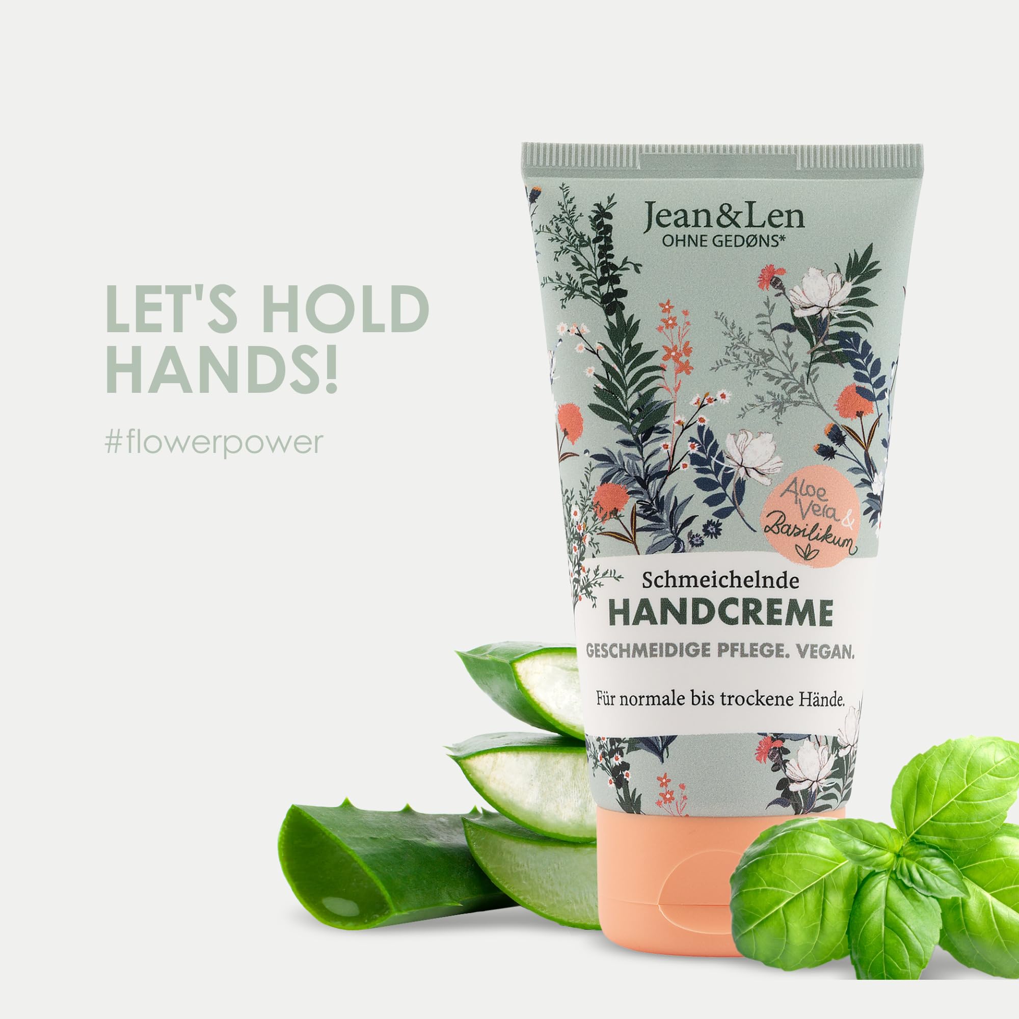 Jean & Len Handcreme Aloe Vera & Basilikum, intensive Pflege fuer normale bis trockene Haende, vegan, 75 ml