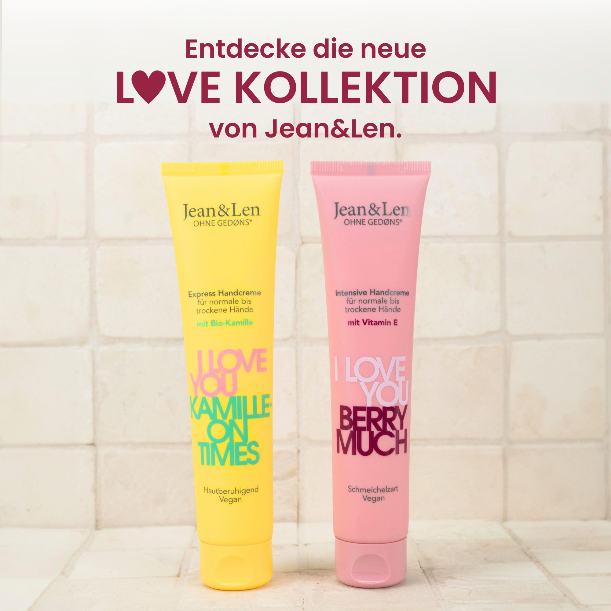 Jean & Len Handcreme I Love You Berry Much, für normale bis trockene Hände, versorgt die Hände mit Feuchtigkeit, zieht schnell ein, vegane Handpflege, ohne Parabene und Silikone, 75 ml