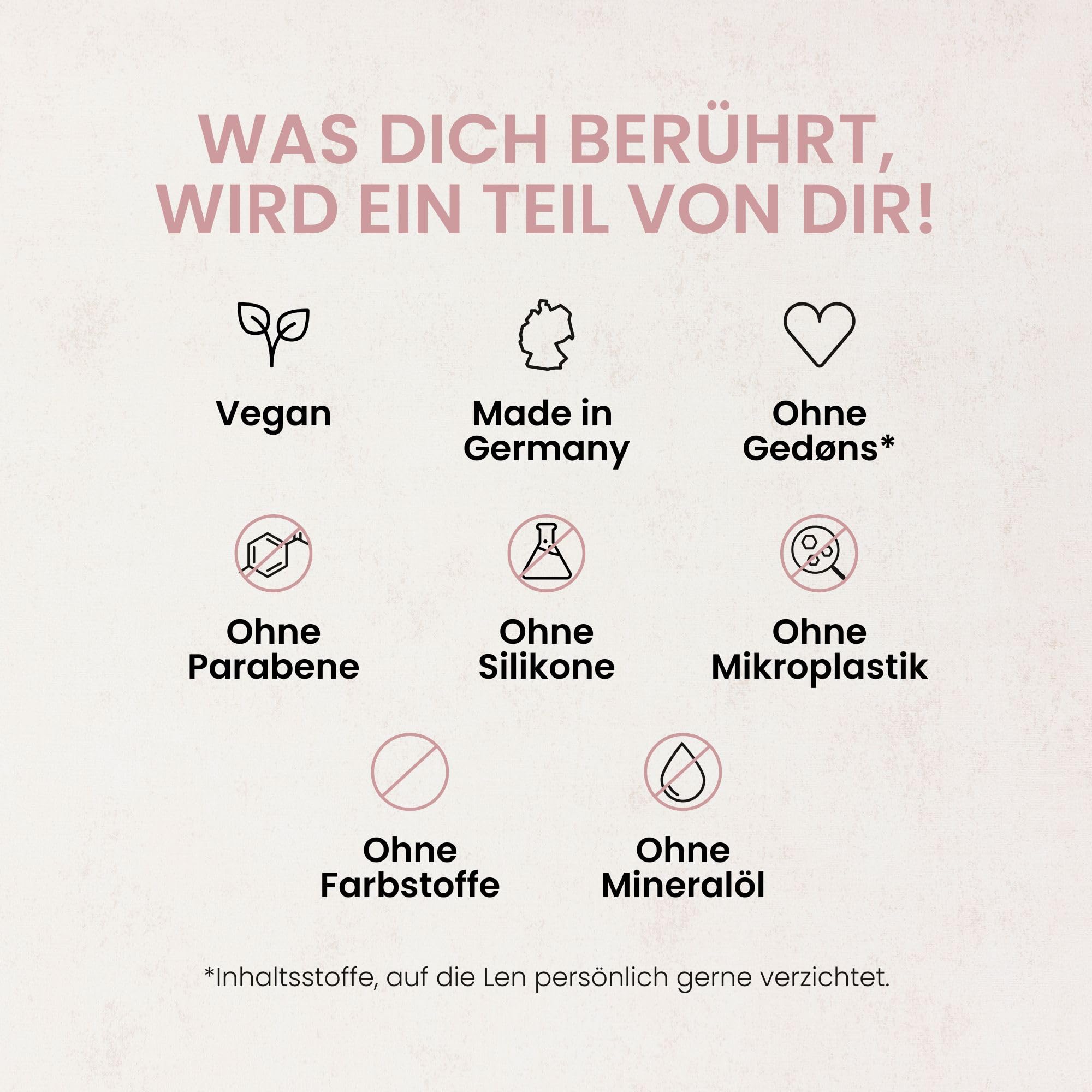 • Ohne Gedøns: Gedøns sind für uns Inhaltsstoffe, auf die Gründer Len persönlich gerne verzichtet – Das Produkt ist vegan und kommt ohne Parabene, Silikone, Farbstoffe, Mikroplastik & Mineralöl aus