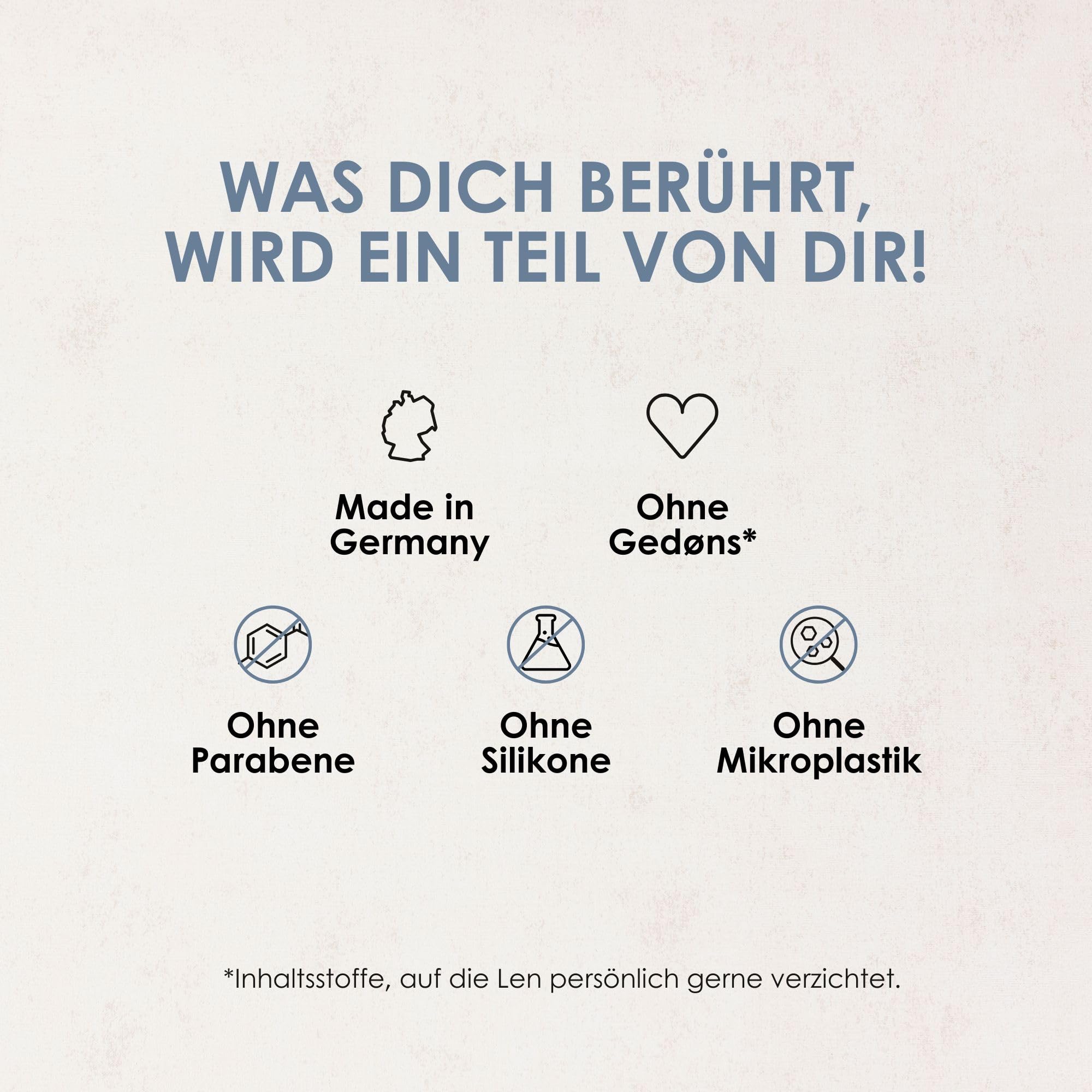 • Ohne Gedøns: Gedøns sind für uns Inhaltsstoffe, auf die Gründer Len persönlich gerne verzichtet – Das Produkt ist vegan und kommt ohne Silikone, Parabene & Mikroplastik aus